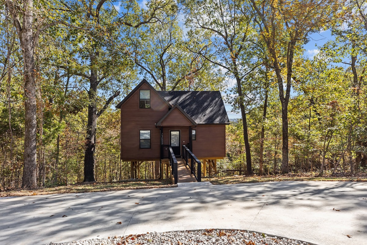 ¡Escápate a una nueva casa del árbol de 2 pisos cerca de Beaver Lake! Disfruta de las vistas a la naturaleza desde la terraza con una bañera de hidromasaje empotrada, mantente cómodo con una chimenea eléctrica y cocina en la cocina totalmente equipada. Este refugio único ofrece 2 dormitorios (uno es un loft al que se accede por escalera), 3 camas y capacidad para 5 personas. Con wifi rápido y un sistema HVAC mini-split para el control climático específico de la habitación, te sentirás aislado pero cerca de las atracciones de Rogers. ¡Perfecto para una escapada tranquila y moderna!