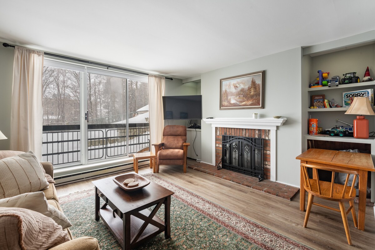 Acogedor apartamento de montaña Ski On-Ski Off con chimenea de madera real y cama tamaño king en Sunrise Village en la montaña Killington. Las actualizaciones incluyen todos los muebles nuevos en el dormitorio principal y el dormitorio de invitados, todos los electrodomésticos de acero inoxidable de primera línea nuevos en la cocina gourmet, sala de estar decorada con buen gusto con nuevo sofá cama tamaño queen y sillas a juego. Simplemente camina hasta el final del estacionamiento hasta la pista de esquí Ski On/Off. Soy dueño de la unidad contigua, más información a continuación.