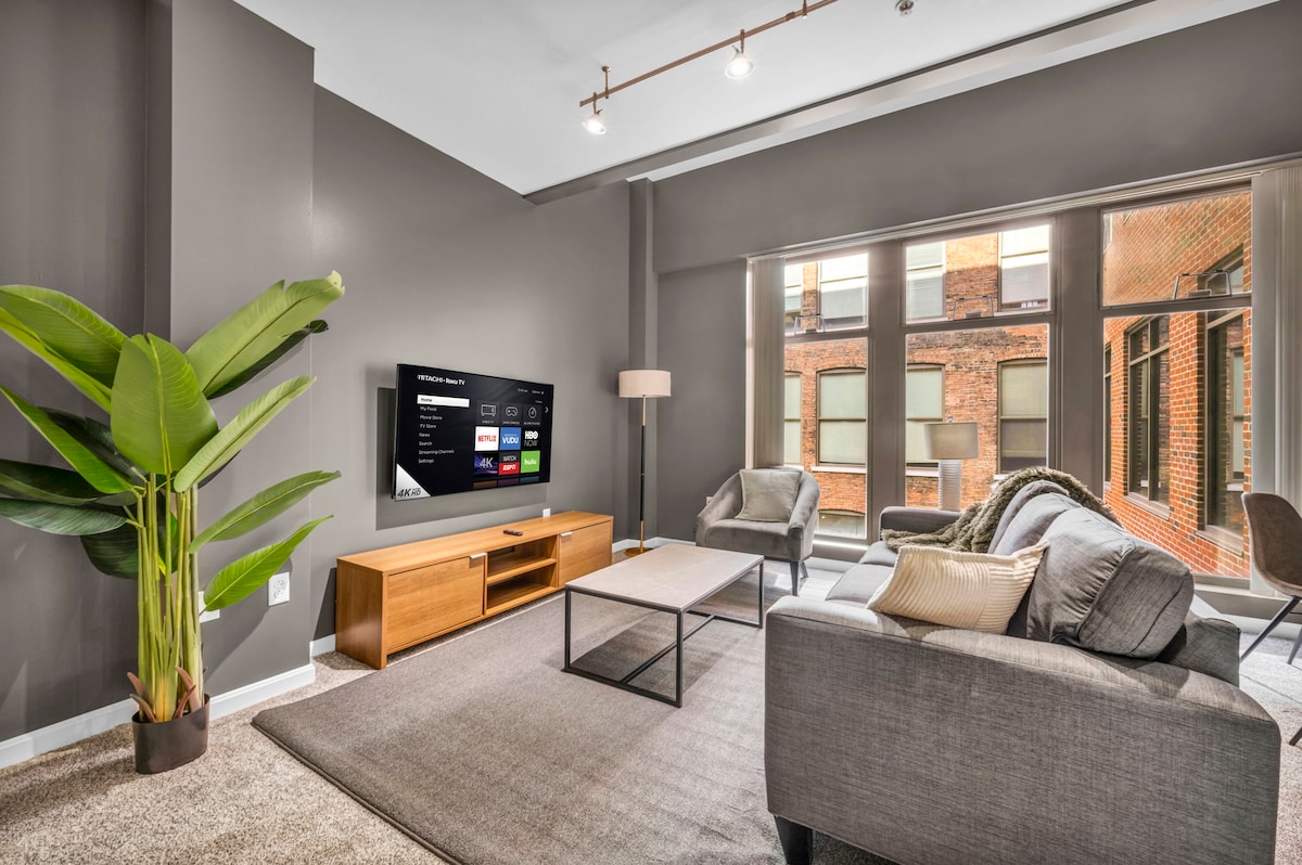 Bienvenido a su refugio privado en el corazón del centro de la ciudad, un sofisticado loft de 2 dormitorios con techos altos y luz natural diseñado para la comodidad y la elegancia. A ✔ 5 minutos a pie de Playhouse Square y East 4th Street para cenar A ✔ 10 minutos de Progressive Field, Rocket Mortgage FieldHouse y FirstEnergy Stadium ✔ Espacio apto para trabajar con wifi rápido ✔ Cocina de concepto abierto totalmente equipada y café ✔ Llegada autónoma fácil Edificio ✔ seguro con centro de fitness y servicios para residentes ✔ Limpieza y desinfección profesional
