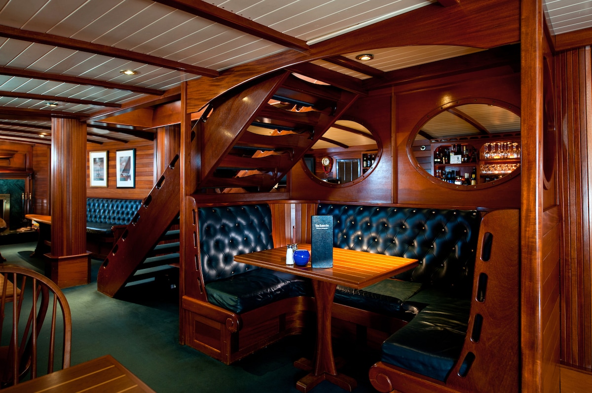 Acogedor restaurante y posada de estilo colonial. 1 cama queen - (puede tener un dosel o no) Cada una de nuestras habitaciones está equipada con baño privado, nevera pequeña y microondas, WIFI de cortesía e incluye desayuno continental. Nuestra propiedad también cuenta con un galardonado restaurante y taberna, The Old Salt, que sirve almuerzos y cenas. En los meses más cálidos, ofrecemos mesas al aire libre además de nuestro comedor interior. Se solicita a los huéspedes que proporcionen una tarjeta de crédito en el momento del registro para un depósito reembolsable de $50.
