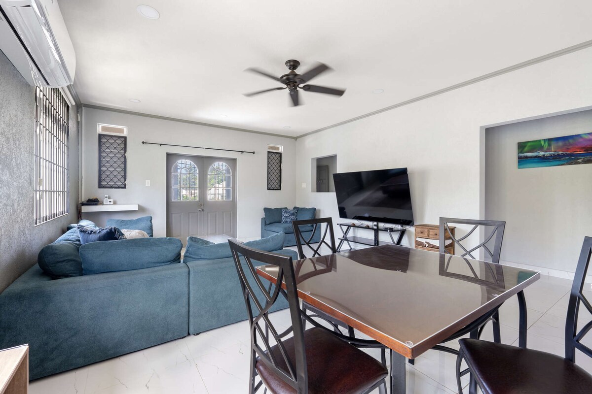 Relájate en esta casa tradicional actualizada de Bajan a pocos minutos de las mundialmente famosas playas de la costa sur. Disfruta de una noche de sueño cómodo y fresco en cualquiera de los 3 dormitorios con brisa, con unidades de aire acondicionado y ventiladores de techo. Refréscate en 2 baños de tamaño completo. Prepara tus comidas favoritas en la cocina moderna totalmente equipada y disfruta de ellas en el bar o la mesa del comedor. Relájate en los amplios espacios, tanto en el interior como en el exterior, y derrite el estrés en el sereno balcón tropical.