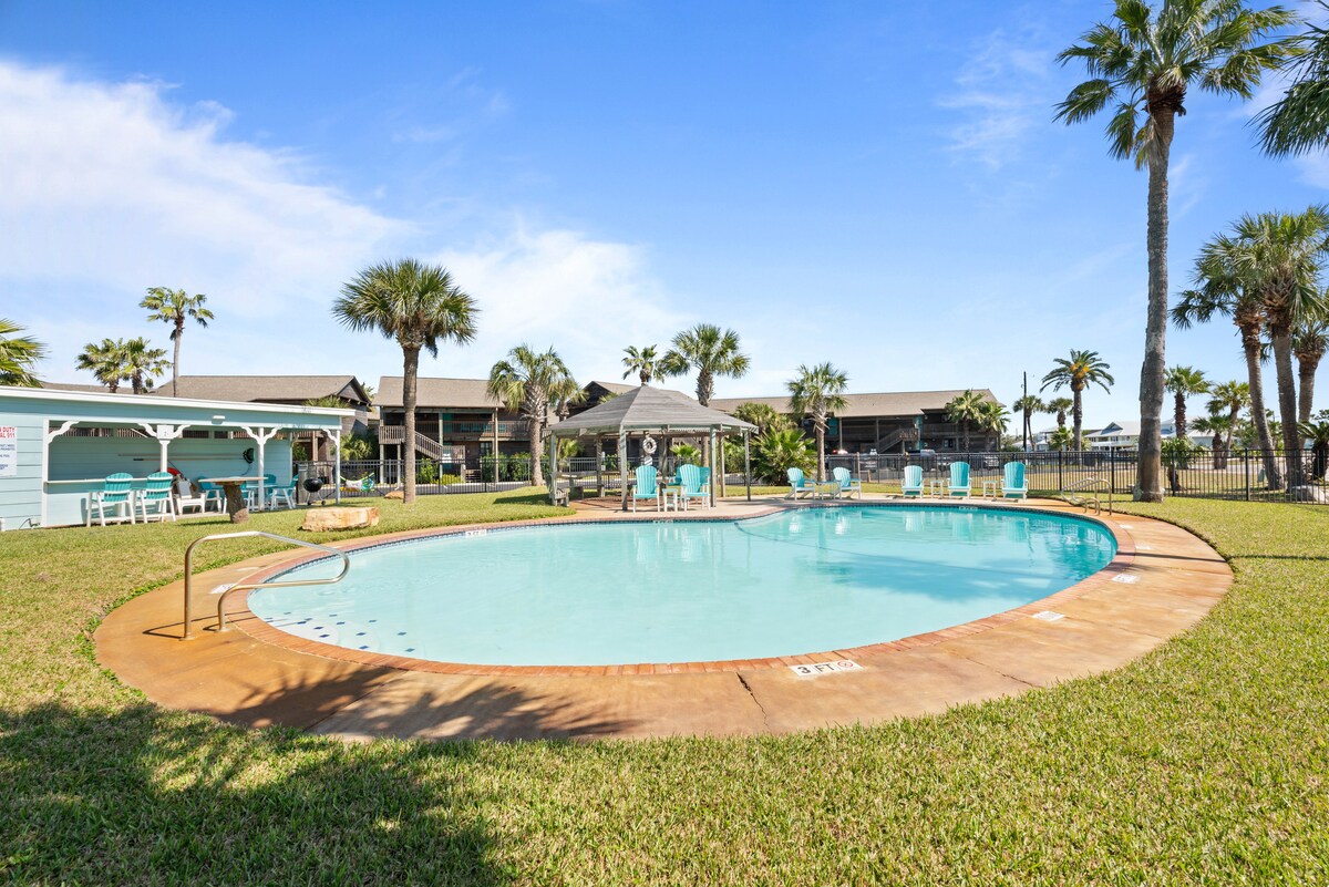 ¡Se admiten mascotas y no hay cargos por mascotas! Increíble condominio en planta baja (sin escaleras) con la bahía de Copano justo al salir por la puerta de su dormitorio/sala de estar, con vistas a Salt Lake en la parte delantera y justo al lado de la piscina. Listo para recibir a familias, mascotas y pescadores. Acceso ilimitado a la piscina y al muelle de pesca, que se encuentran a pocos pasos del condominio.