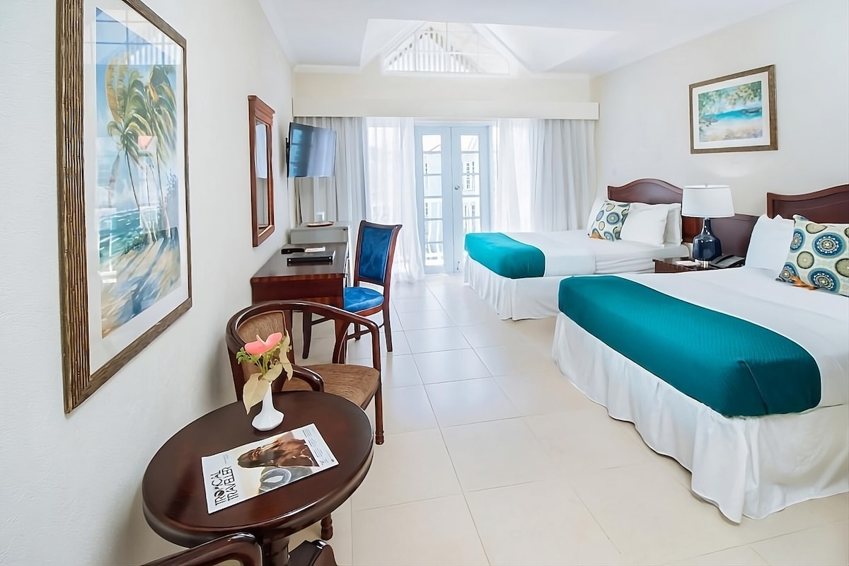 Esta habitación estándar con vistas de los jardines y la orilla. Las habitaciones cuentan con una cama tamaño king o dos camas de tamaño completo (según disponibilidad). Todos los baños en suite cuentan con tocadores de granito, secadores de pelo y espejos de aumento iluminados. Todas las habitaciones ofrecen acceso gratuito a Internet inalámbrico de alta velocidad, puertos de carga USB, doble voltaje en todas partes (110v/220v) e instalaciones de café/té. La habitación incluye servicio de limpieza diario, acceso a la piscina, acceso al gimnasio y desayuno bufé gratuito en el restaurante Ti Bananne.