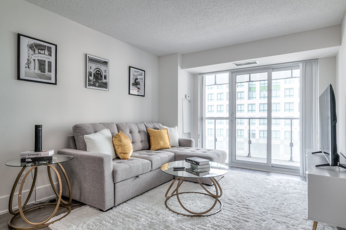Un condominio recién amueblado ubicado en el corazón del centro de Toronto garantizado para maximizar tu estancia con todo muy cerca. Este departamento tiene techos de 10 pies y más de 700 pies cuadrados. Ofrecemos WiFi de alta velocidad, TV por cable, lavadora, secadora y servicios básicos. Explora Toronto justo en la puerta de tu casa: - Metro Toronto Convention Centre 30m - Torre CN/Rogers Centre 210m - Union Station 500m - Harbourfront Centre 700m - Air Canada Centre 900m - TIFF Bell Lightbox