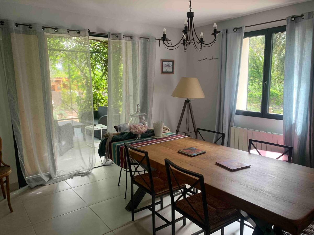 Jolie petite maison récente de 50m² au coeur de la Provence, avec une belle chambre pour un couple, une salle d'eau privée avec douche, un WC séparé, une cuisine donnant sur le salon/salle à manger et une terrasse avec jardin privatif. Logement entier disponible, de plain pied, non fumeur. Parking gratuit dans la propriété, maison attenante à celle des propriétaires avec entrée indépendante et aucun vis à vis. environnement de campagne, pinède et forêt, très calme, idéal pour se ressourcer.