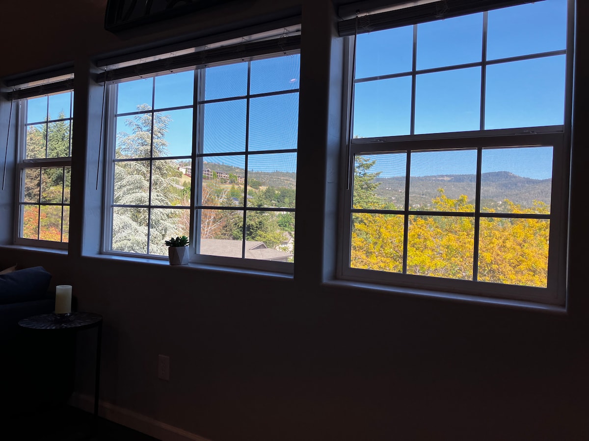 Encantadora, amplia y privada suite de invitados de 1 dormitorio con vistas en Upper East Medford. Hermosa sala de estar/comedor de concepto abierto con mucho espacio para relajarse y descansar. Este espacio también incluye una cama tamaño queen semiprivada. Hay una gran ducha de lujo, cocina pequeña y otros servicios (microondas, nevera y cafetera). En el exterior hay una gran terraza cubierta privada con asientos exteriores y un pozo para hacer fogatas. Cerca de bodegas, golf, restaurantes y excelentes rutas de senderismo. Esta es una propiedad para no fumadores.