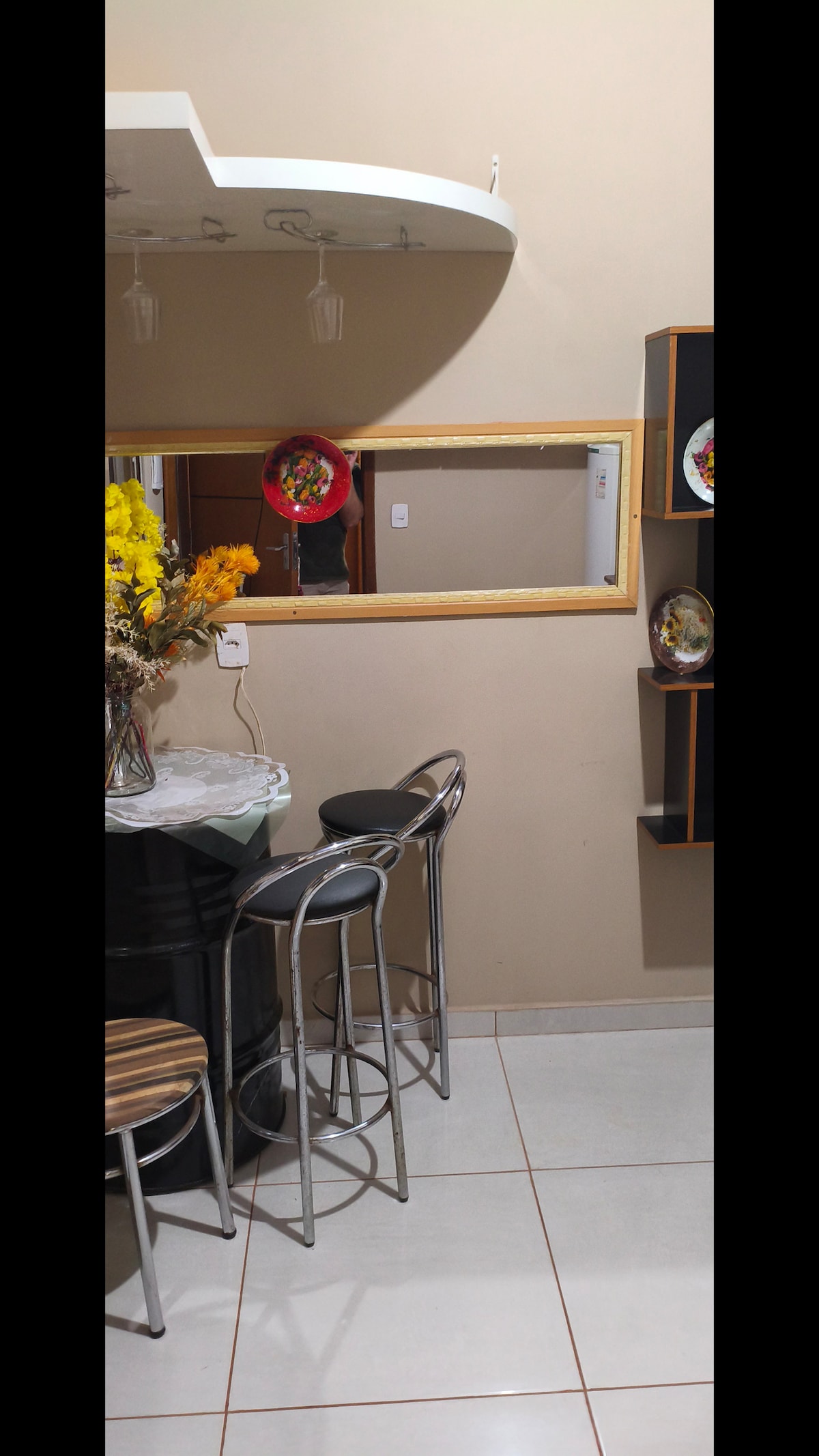 Minha acomodação tem um perfil aconchegante e prático. Tem uma área de 85m, com visão para grande parte da cidade. Possui 3 lindos pés de ipê em frente, destacando-se do restante da avenida. O apartamento está no terceiro piso, o que demanda uma subida de 2 lances de escadas. Isso não é problema se você não tem dificuldades com locomoção. Possuímos uma cozinha compacta, com todos os acessórios para preparar qualquer refeição.
