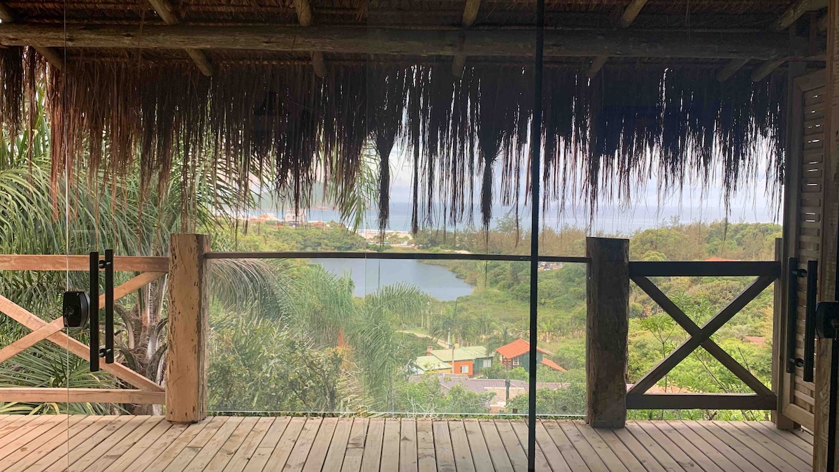 Loft nuevo de alto estándar en medio de la naturaleza en el barrio de Morrinhos con vista parcial al mar y a la ciudad de Garopaba. cerradura electrónica, cama tamaño king, Smart TV, aire acondicionado (frío y calor), secador de pelo, toallas de playa, lavadora/secadora Samsung, cafetera, licuadora, tostadora, hervidor eléctrico, microondas, cocina, horno, altavoz bluetooth jbl. Terraza privada y zona de jardín compartida. El loft está en el piso de abajo de nuestra residencia. Estacionamiento compartido.
