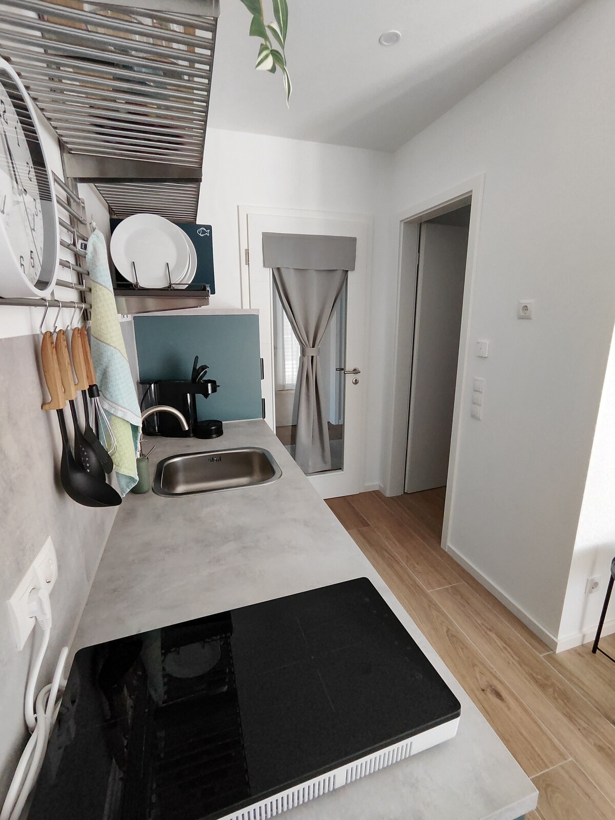 Nuestro anexo "Zum kleine Zollstock" es pequeño, pero OHO. También hay disponible disponible. El baño ofrece una ducha del piso al techo, además del inodoro y el lavabo. Se proporcionan toallas y gel de ducha. El sofá cama se puede sacar a 1,60 m y te invita a relajarte con el Smart TV giratorio. La cocina pequeña está totalmente equipada con nevera, placa de inducción, mini horno, lavavajillas, cafetera, hervidor y accesorios a juego.