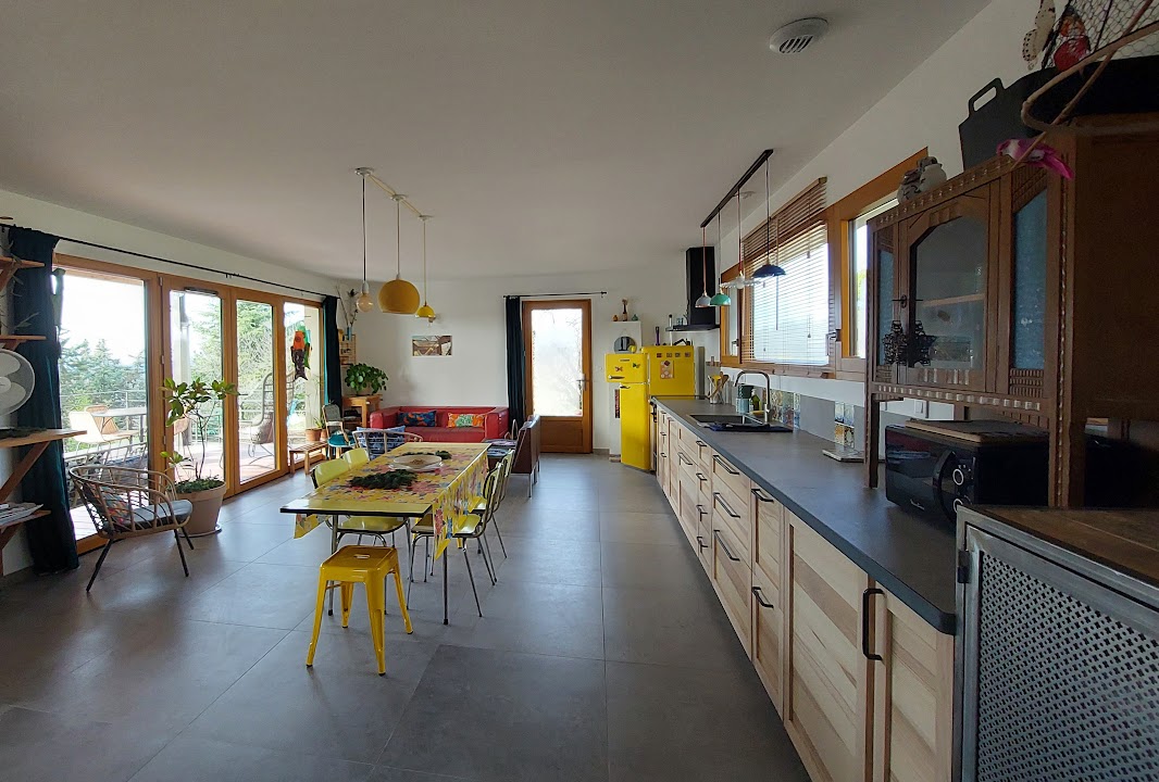 Es una construcción nueva de madera de una sola planta de 70 m², clasificada con 3 estrellas y con una gran terraza elevada. A través de los amplios ventanales, se puede contemplar un roble verde y un pequeño huerto. Serás el único a disfrutar de esta casa situada en las alturas de Apt a 5 minutos en coche del centro de la ciudad; de su terraza suspendida de madera de 20 m2 y un jardín de 800 m2 con plazas de aparcamiento.