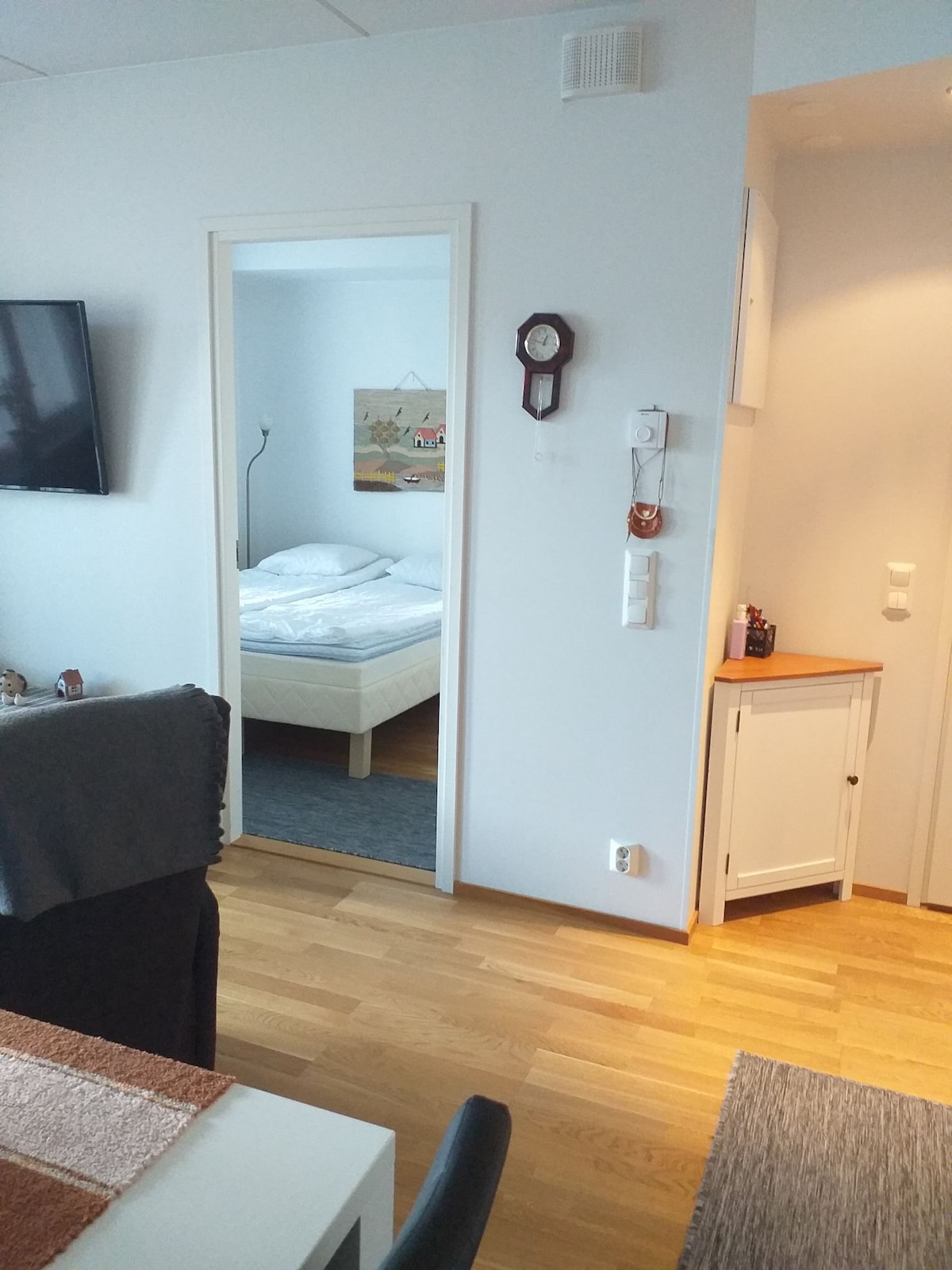 Un moderno apartamento de estilo escandinavo (39 metros cuadrados) cerca del centro de la ciudad de Rovaniemi con bonitas vistas al río y la ciudad. Nuestro apartamento tiene entrada privada y puede acomodar cómodamente hasta cuatro personas. Senderismo por Ounasvaara a la vuelta de la esquina, el centro de la ciudad, con muchos restaurantes y atracciones a los que se puede llegar caminando. Cocina/sauna/ducha/WC/aire acondicionado/lavadora/secador de aire/ropa de cama y toallas incluidas/TV/Chromecast/Wi-Fi gratis/terraza privada amueblada/enchufe de calefacción del coche.