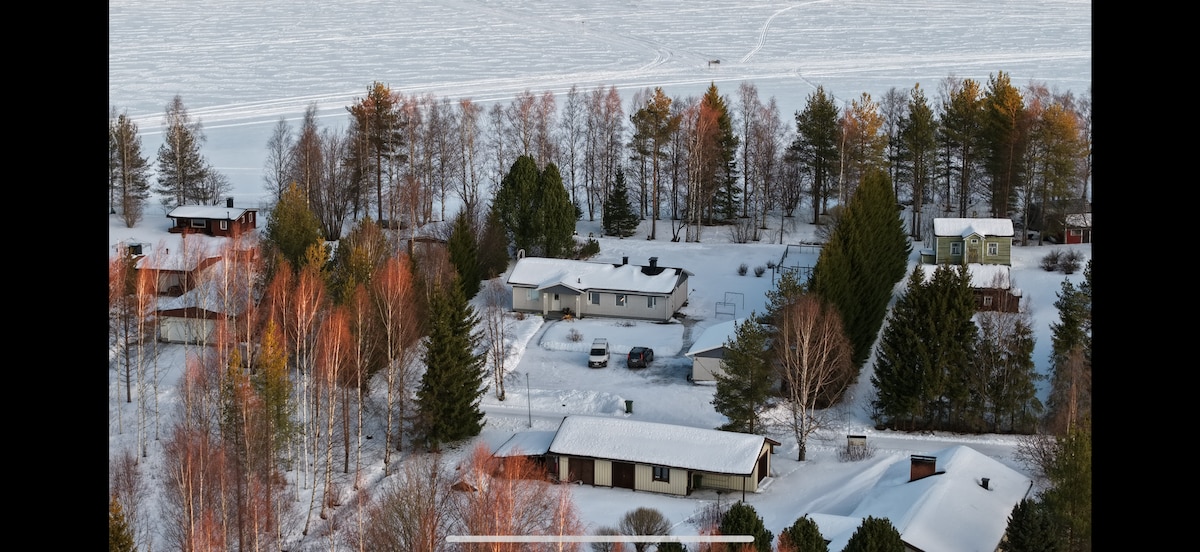 Una nueva casa de vacaciones de madera situada en un pequeño pueblo a 60 km de Rovaniemi y a 40 km de la frontera sueca. Hay un gran lago cerca de la cabaña, bosque de pinos y posibilidades de esquí de fondo y senderismo. La casa está bien equipada y es moderna. Es una buena casa de vacaciones para familias con niños. Hay dos dormitorios, un balcón para dormir, sala de estar con una cama, sofás, mesa de comedor y cocina, baño y sauna. Verás renos a veces cerca de la casa.