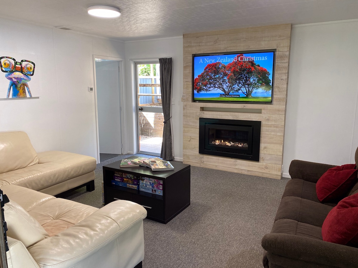 Trae a toda la familia o empaca el aparejo de pesca y trae tu barco y compañeros de pesca, este lugar lo tiene todo. Relájate en una de las 2 amplias cubiertas, escucha a los pájaros mientras disfrutas de la paz de las colinas cubiertas de arbustos circundantes. Prepara tu captura y cena al aire libre o disfruta de una comida abundante en el pub local justo alrededor de la esquina. Un clásico kiwi bach en un lugar tranquilo lejos del bullicio loco. A solo 5 minutos a pie de la playa Tapu para nadar y salir de la lechería.