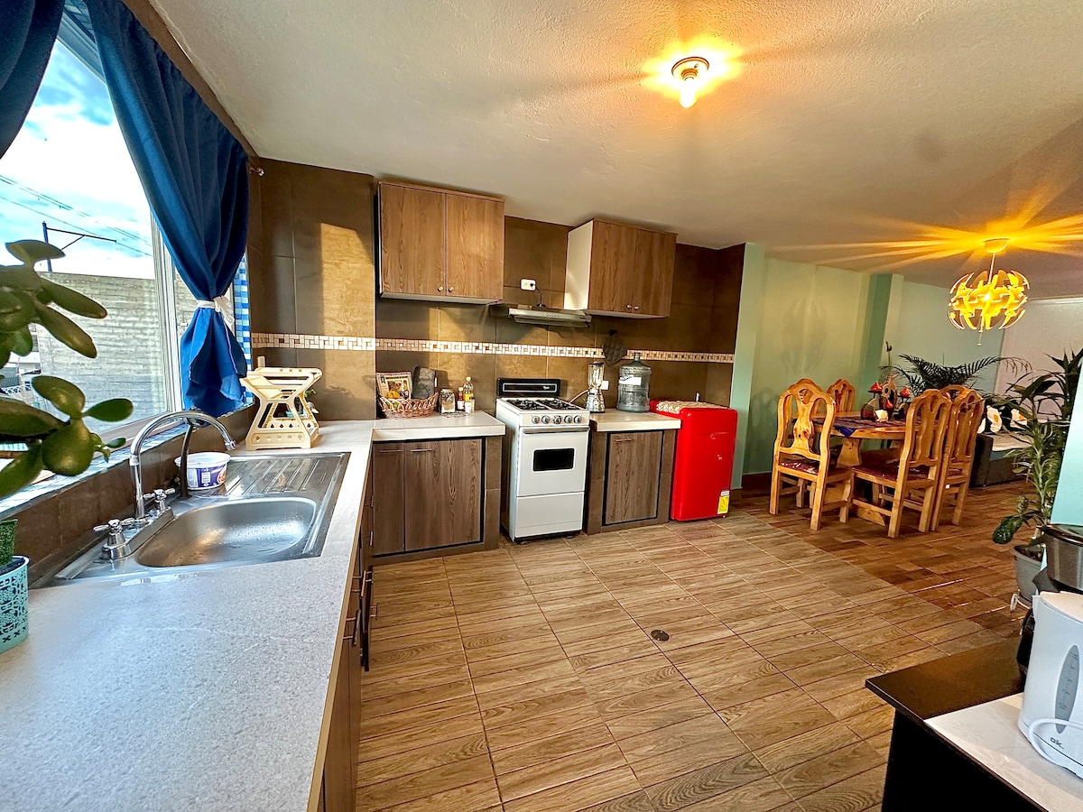 Disfruta de la comodidad de este alojamiento tranquilo y céntrico, ideal para trabajo remoto. Ubicado en la parroquia Alangasí, con fácil acceso a complejos turísticos con piscinas de aguas termales, puedes realizar caminatas al cerro Ilaló que brinda vistas únicas del hermoso Valle de los Chillos y Tumbaco, disfruta de comidas tradicionales, también puedes conocer hermosas cascadas como el Pita, Molinuco, Cóndor Machay, entre otras, que están ubicadas a unos 45 minutos del alojamiento.