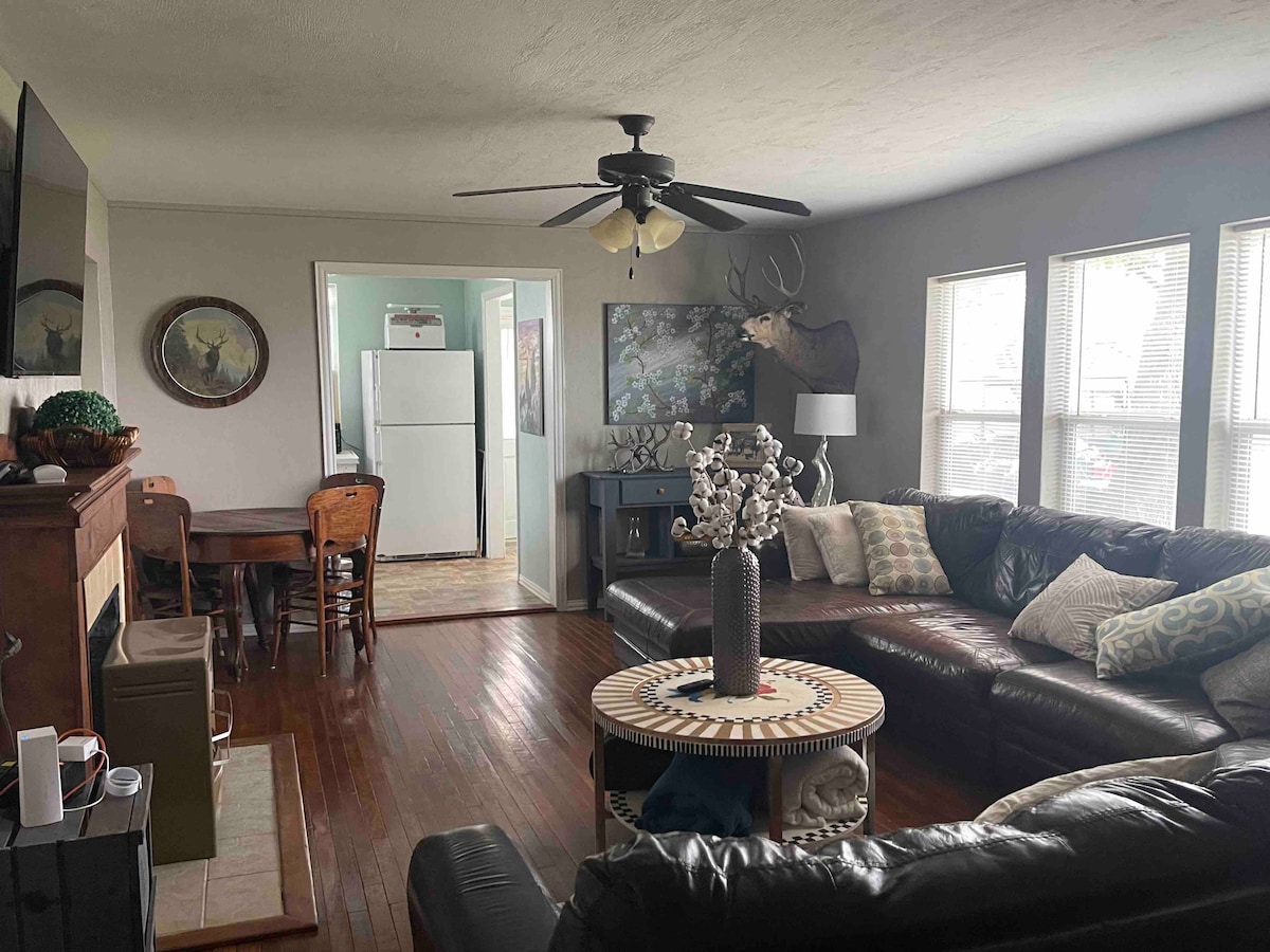 Esta bonita casa cuenta con un ambiente muy tranquilo y elegante. Se encuentra en el corazón de la ciudad, en una calle tranquila. El dormitorio principal, con una cama tamaño queen, tiene su propio televisor Roku y su propio baño completo. El dormitorio 2 tiene una cama tamaño queen y un televisor con Roku. El dormitorio 3 tiene una cama doble. El sofá tiene un colchón de espuma viscoelástica tamaño queen que se puede sacar y convertir en una cama. ¡Esta casa te invita a descansar y disfrutar de tu tiempo con estilo mientras reduces la velocidad en nuestra pequeña y bonita ciudad de Ballinger, al oeste de Texas!