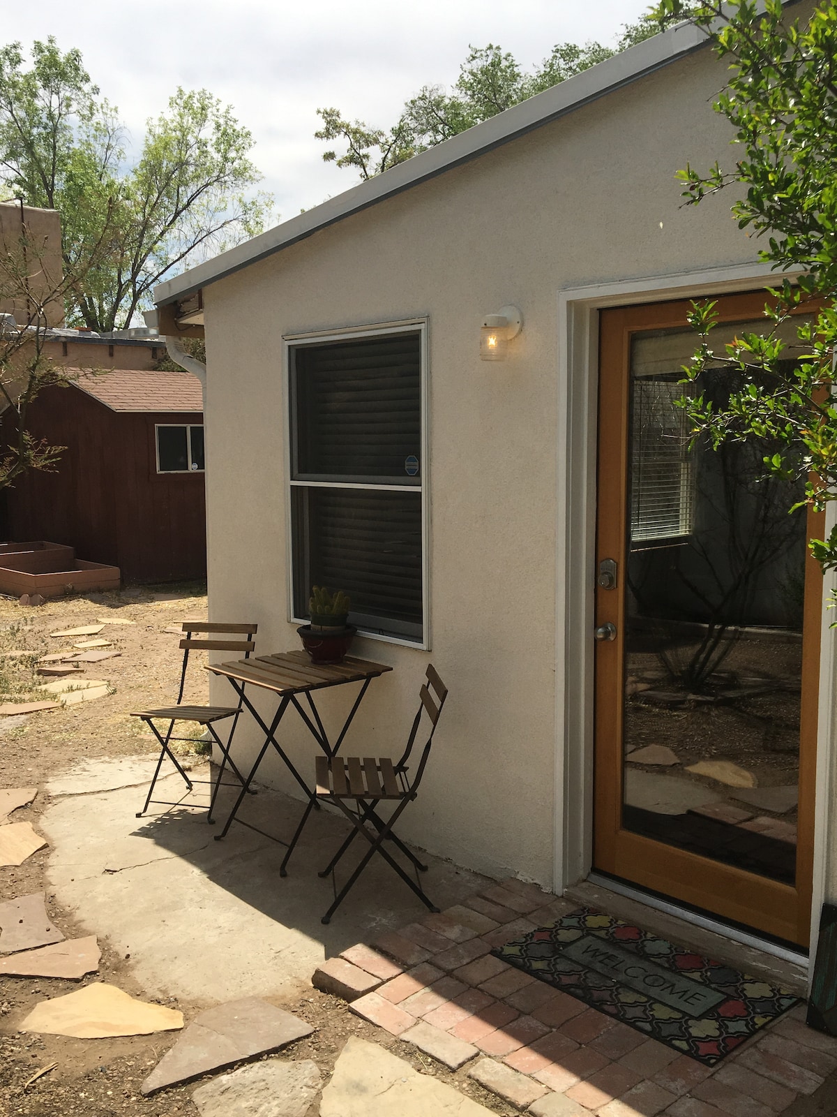 ¡Gracias por ver nuestro anuncio y te recomendamos que leas nuestras evaluaciones! Nuestro objetivo es hacer de nuestra casita un lugar en el que nos gustaría alojarnos. Este espacio relajante será tu propia escapada privada en el centro de ABQ. Relájate y aparca tu coche fuera de la calle detrás de nuestra puerta eléctrica. Este estudio privado tiene un patio/jardín y fácil acceso a los excelentes restaurantes, cafeterías y cervecerías de ABQ. El estudio está equipado con una cama tamaño king, baño completo, vestidor y sofá cama para una tercera persona.