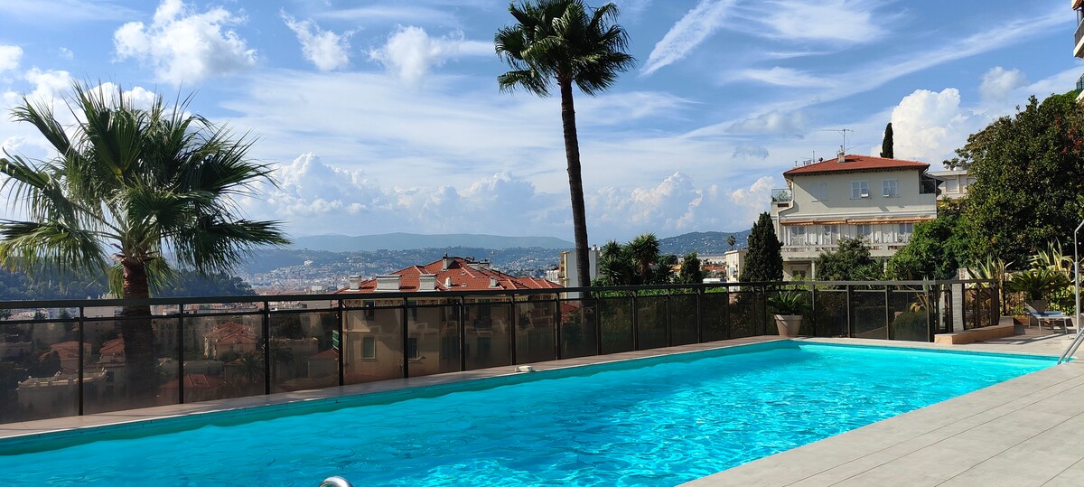 Disfruta de esta hermosa vista en la Bahía de Ángeles de la Costa Azul en Niza, cerca del puerto, casi en Cap de Niza y un poco por encima del centro de la ciudad, ¡lejos de la contaminación del aire! Reformado con gusto, muebles de diseño, arte, este departamento tiene capacidad para 2 personas. aire acondicionado y ventiladores de techo. Playas exclusivas a 15 minutos a pie, las panorámicas más maravillosas del mundo. Estacionamiento privado en un garaje seguro.