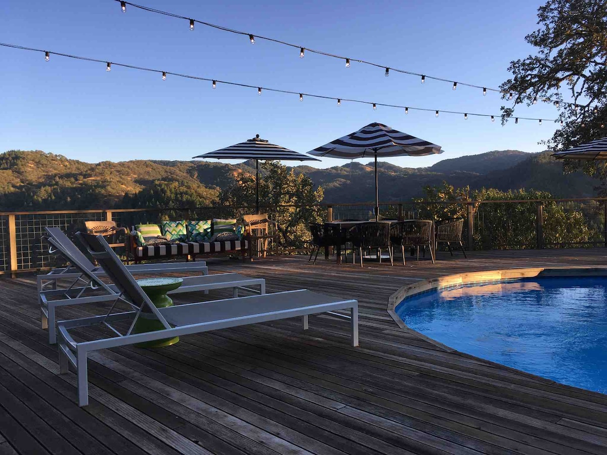 Casa en la región vinícola de Mendocino, a la 1:40 horas en auto de San Francisco. Llega a un plano de piso abierto, limpio, lleno de ventanas, cocina remodelada e isla, casa con espectaculares vistas a la ladera de la montaña. Sube a la enorme terraza con piscina, jacuzzi, ducha climatizada. Crea recuerdos de toda la vida relajantes, enlaces, comedor, parrilla, cócteles, trabajo junto a la piscina con amigos y parejas familiares, solitarios, niños, mascotas en 21 acres de roble y madrone. ¡4 acres vallados en el área de mascotas! ¡nuevo alojamiento del 21/03! @ 'Stellar Jay Valley'