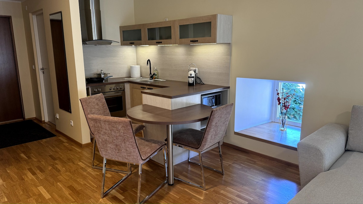 Freshly renovated & cozy ground-floor apartment in the heart of Kuressaare perfect for a holiday or work trip. 📍 Walk everywhere: • Town center — 200 m • Castle Park — 200 m • Seaside / promenade — 600 m 🏡 Inside: • Open-plan living space with a modern, fully equipped kitchen, dining area, and a sofa bed that comfortably sleeps two additional guests 🚗 Extras: • Private on-site parking • Everything you need for a comfortable stay • Summer bicycle rental available for cruising in Kuressaare.