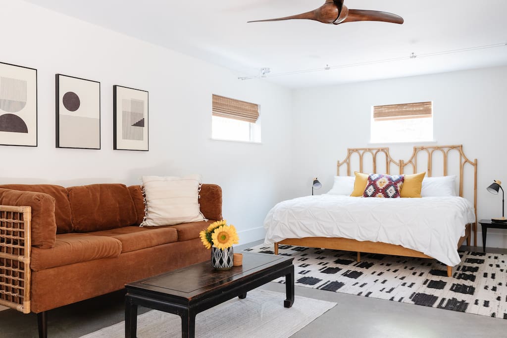 ¡Alójate con estilo en este luminoso estudio Boho, ubicado en el corazón de Chico! El minimalismo moderno se combina con la icónica inspiración del suroeste en esta nueva construcción para crear un espacio ideal para una escapada de fin de semana. Terminada en la primavera de 2021, la Casita de Chico es un espacioso estudio en la planta baja que combina cuidadosamente las vibraciones industriales con un ambiente relajante para crear un espacio en el que te encantará alojarte.