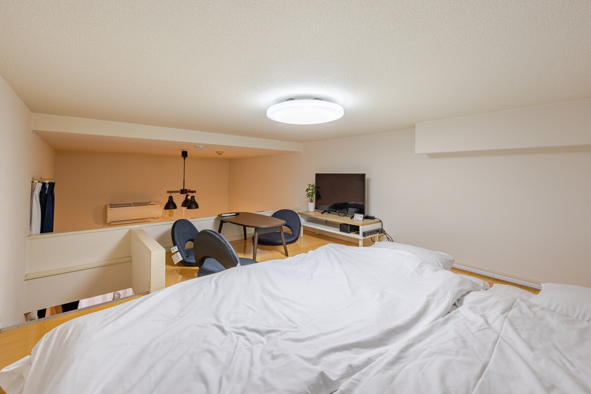 Esta es una tranquila habitación de 1 dormitorio de estilo loft ubicada en la histórica zona de Sumiyoshi de Fukuoka. Ofrecemos el lugar perfecto para alojarse para aquellos que quieren pasar un tiempo tranquilo y cómodo haciendo turismo o por negocios. Acceso cómodo A 6 minutos a pie de la parada de autobús "Sumiyoshi" Buen acceso desde la estación de Hakata - Tienda de conveniencia a 1 minuto a pie. Características de la habitación Loft tipo 1K: espacio compacto pero abierto Disposición de la cama: 1 litera: tiene capacidad para 5 personas (1 cama supletoria y 2 juegos de futones disponibles) * Ponte en contacto con nosotros con antelación si deseas alojarte con 3 o más personas Servicios: wifi gratis, aire acondicionado Información del barrio Santuario de Sumiyoshi: recomendado para un paseo para experimentar la historia y la cultura Canal City Hakata: un gran centro comercial y de restauración Escenarios de uso recomendados Viajes de negocios o en pareja Estancias familiares pequeñas (para aquellos que pueden estar tranquilos) Otras atracciones También se puede reservar para estancias largas y para trabajar a distancia. La cocina y la lavadora están disponibles, por lo que es conveniente para estancias de media a larga duración, como viajes de negocios y formación. El acceso a Tenjin y al aeropuerto de Fukuoka también es bueno, y se puede utilizar para una amplia gama de turismo y negocios.