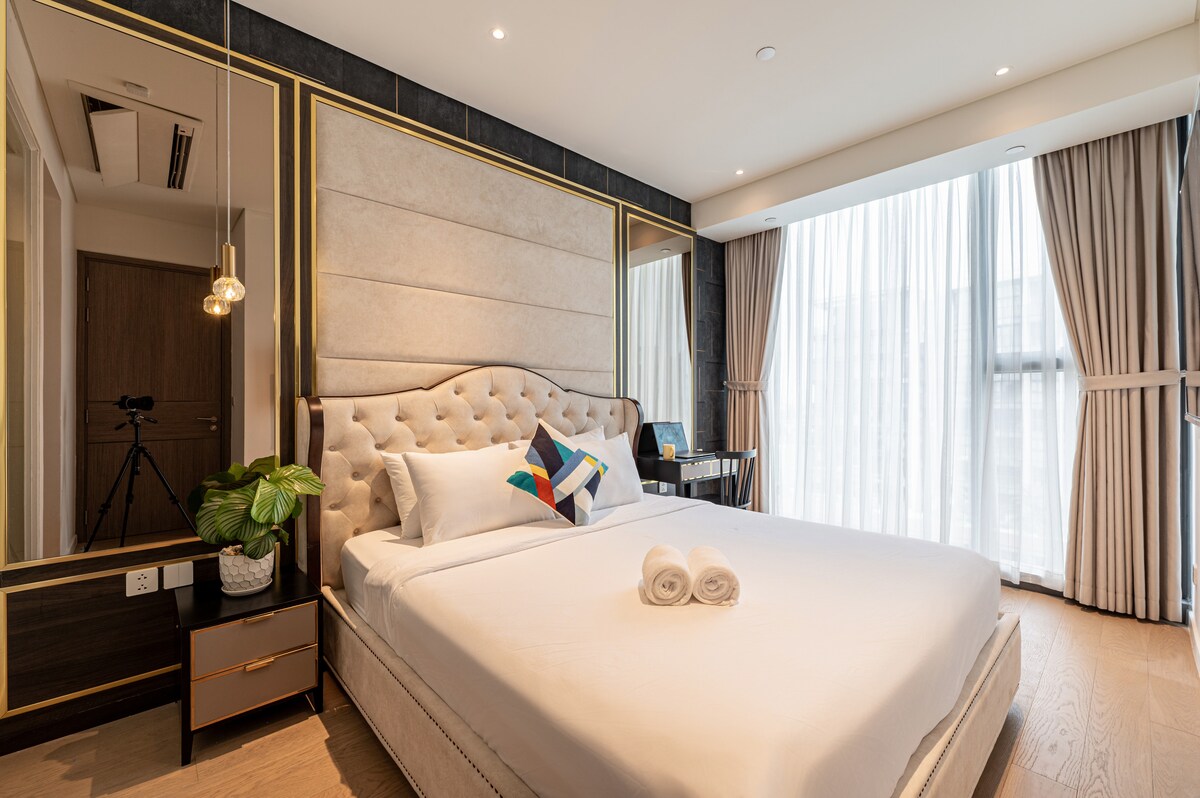 Luxury 5* The Opera Residence Corner Apartment by ChiHome - River View Bason District 1, The LandMark 81, The Galleria, The Mett Office, District 2 Sala Thiso Mall. - Torre B, Scala, nivel 1x unidad 10 - Tamaño: 70 m2 (unidad de esquina) - Incluye 2 dormitorios, 2WC, cómodos para alojarse de 2 a 4 personas. - Televisión inteligente de 65 pulgadas con Netflix y YouTube - Sofá, sillón, mesa de té. - Mesa de comedor con 4 sillas. - Utensilios de cocina completos. - Internet inalámbrico de alta velocidad disponible. • Aire acondicionado para toda la casa - Acceso 24/7 al edificio, los 7 días de la semana.