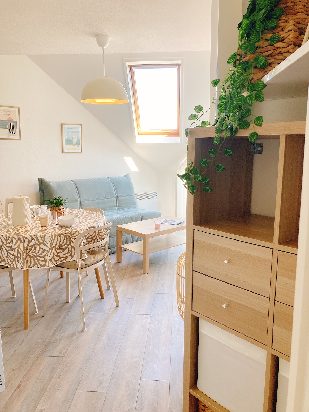 Hola y bienvenido a bordo de este bonito estudio abuhardillado, situado en el último piso de esta hermosa casa de Carnac de 1939 «Ti Melen». Con una ubicación ideal entre playas y megalitos. Una vez que se haya instalado, su temática dejará navegar su imaginación, prolongando así su experiencia de nuestra hermosa región. Estaremos encantados de compartir nuestros favoritos (restaurantes, tiendas, paseos…). No dude en ponerse en contacto con nosotros para preparar su estancia. Hasta pronto. Valérie y Luc.
