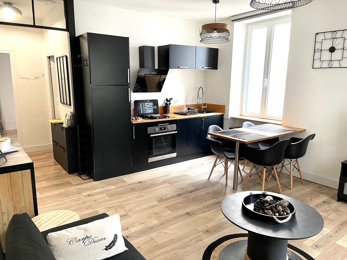 Situado en una residencia segura y tranquila en una pequeña plaza, al abrigo de las miradas y del paso, fiestas prohibidas.( guarda en el lugar ). Encantador estudio de 24 m2 optimizado y reformado (2023) con aspecto de un gran será el garante de sus vacaciones exitosas en el centro de la ciudad de La Rochelle. al pie del mercado central, descubrirá a pie el puerto viejo, sus calles empedradas, el casco antiguo, estación de tren a 10 minutos a pie Opcionalmente GARAJE SEGURO a 50 metros de la residencia. WIFI con FIBRA y paquete de TV