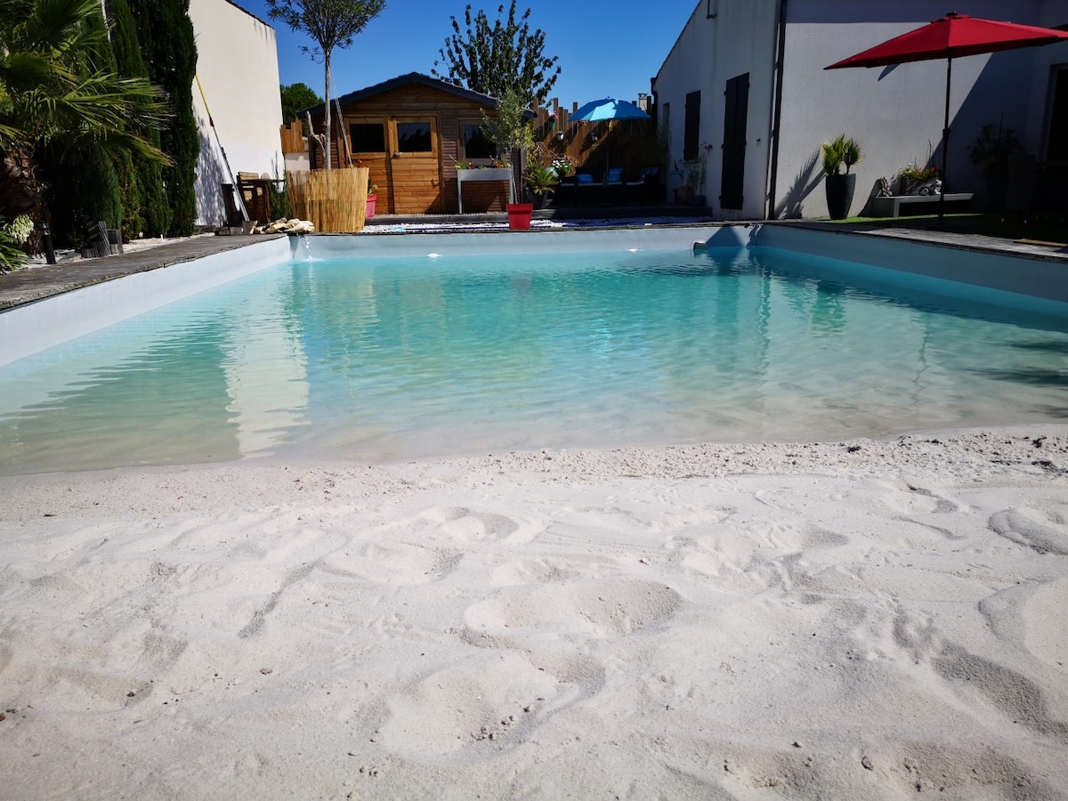El MaranZen en el corazón del pantano de Poitevin ,a 3 minutos a pie del puerto,en medio de un parque de más de 1,2 hectáreas en una residencia segura con piscina +aparcamiento gratuito, este appt. entero de 35 m² incluye 4 camas para adultos, 1 dormitorio,SBD, bañera, cuna elevadora para bebé, WC,sala de estar,cocina +jardín y terraza privada. A su disposición: ropa de cama/wifi/micro-O/TV+ /enceinteBT/secador de pelo/plancha/tostadora/lavadora/nevera, horno,etc. Tranquilo, arbolado. Perfecto para una estancia zen.