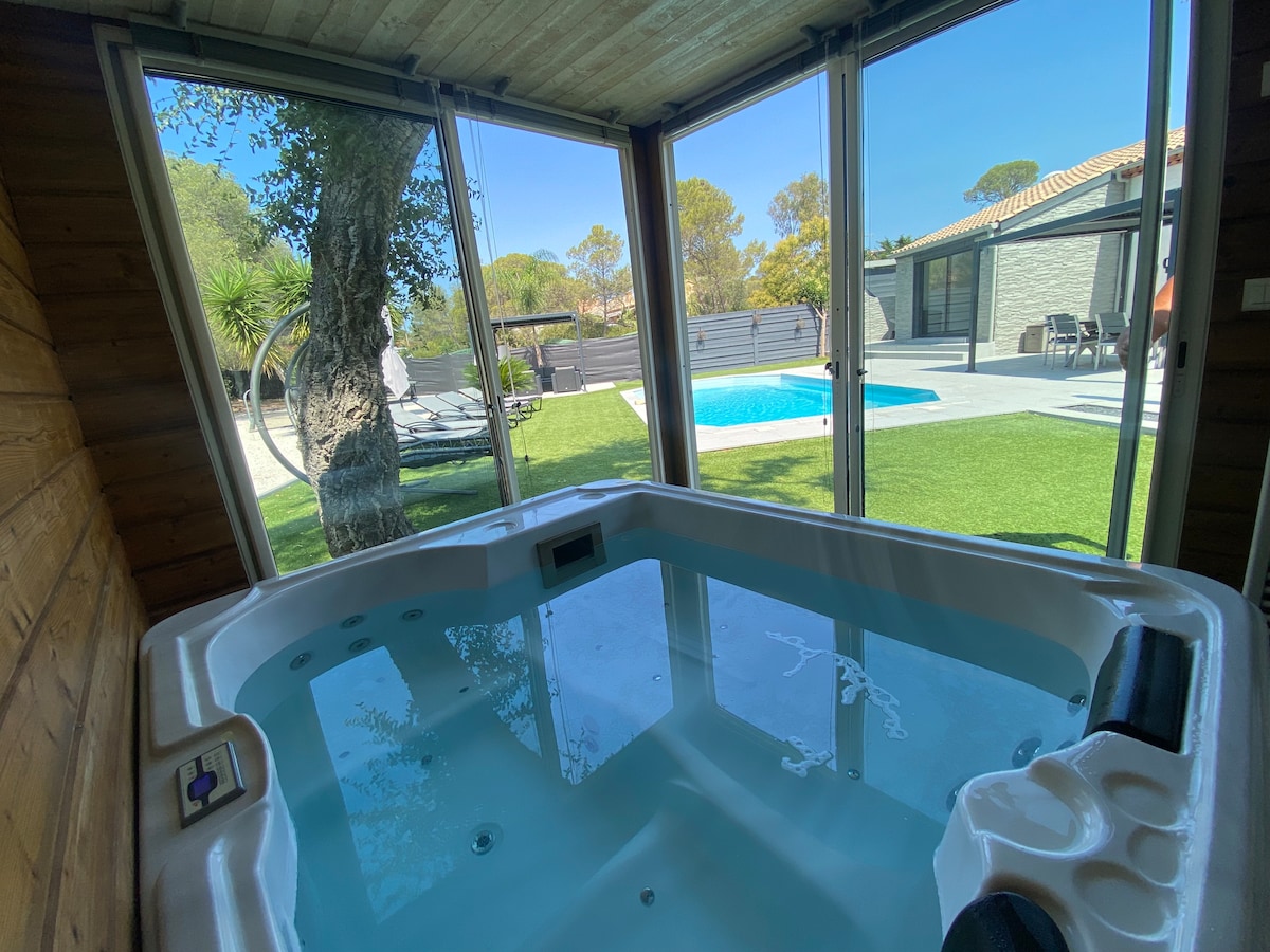Villa piscina jacuzzi sauna, estación de carga de coches