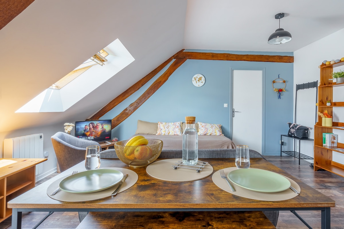 Magnífico estudio de 33 m2 en el centro de la ciudad. 7 días o más -20% 28 días o más -30% - Totalmente renovado, muy luminoso, con luz natural y alojamiento totalmente equipado. - Desayuno incluido para su primera noche. - Cama paraguas 👶🏻 -Netflix -Internet de fibra -Situado en una calle tranquila, de un solo sentido, pegada al centro de la ciudad, así como al castillo. - Calle con estacionamiento de pago y estacionamiento del castillo a 100 m gratis. -A pie: A 2 minutos del castillo y el centro de la ciudad. 10mins de la estación de tren