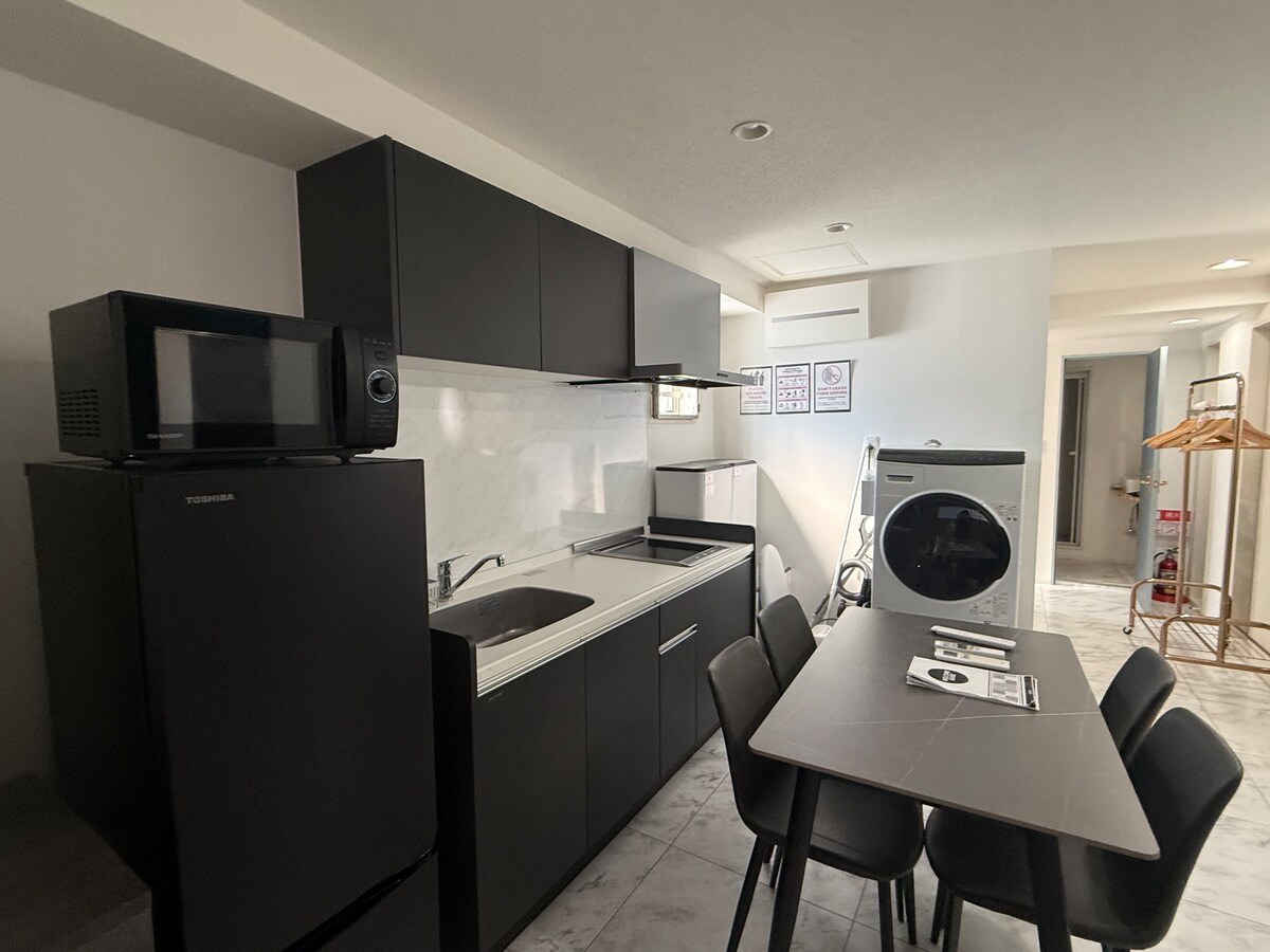 A solo 2 minutos a pie de la estación, Palette House es un refugio acogedor y elegante perfecto para explorar Tokio. La cocina de estilo industrial incluye una barra en la isla, utensilios de cocina completos, copas de vino y un dispensador de agua, ideal para cocinar y tomar bebidas por la noche. El salón está decorado con madera flotante natural y un cómodo sofá, mientras que el dormitorio de estilo japonés moderno ofrece un espacio refinado y relajante. Con comodidades bien pensadas y un diseño cálido, es una base perfecta para parejas y familias.