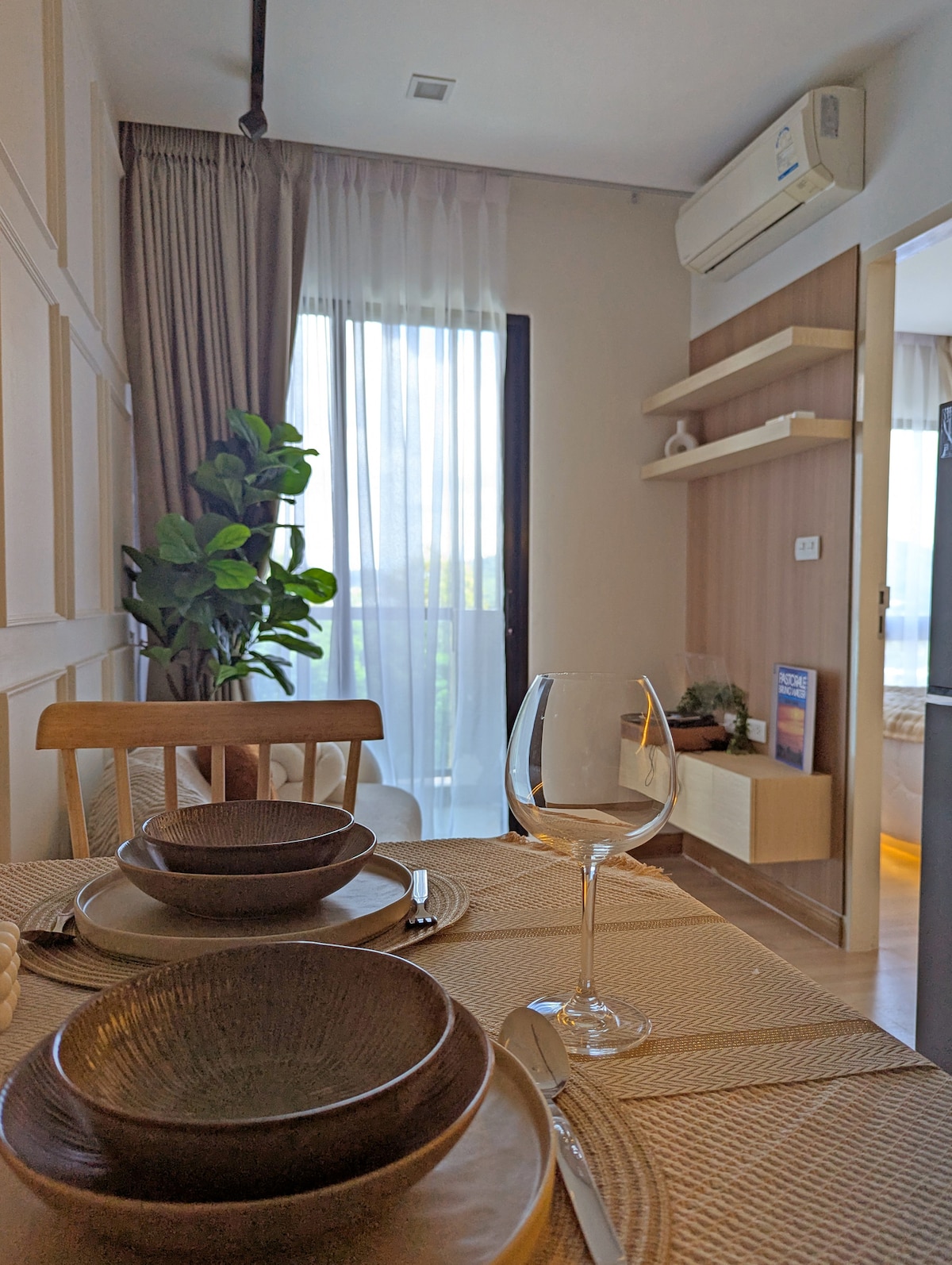 El apartamento de 36 metros cuadrados con una gran vista del bosque está en el último piso del nuevo condominio, The Title Halo 🪐 ✔ Sin pagos adicionales por el número de huéspedes ✔ Sin cargos adicionales. El coste final aparece en Airbnb