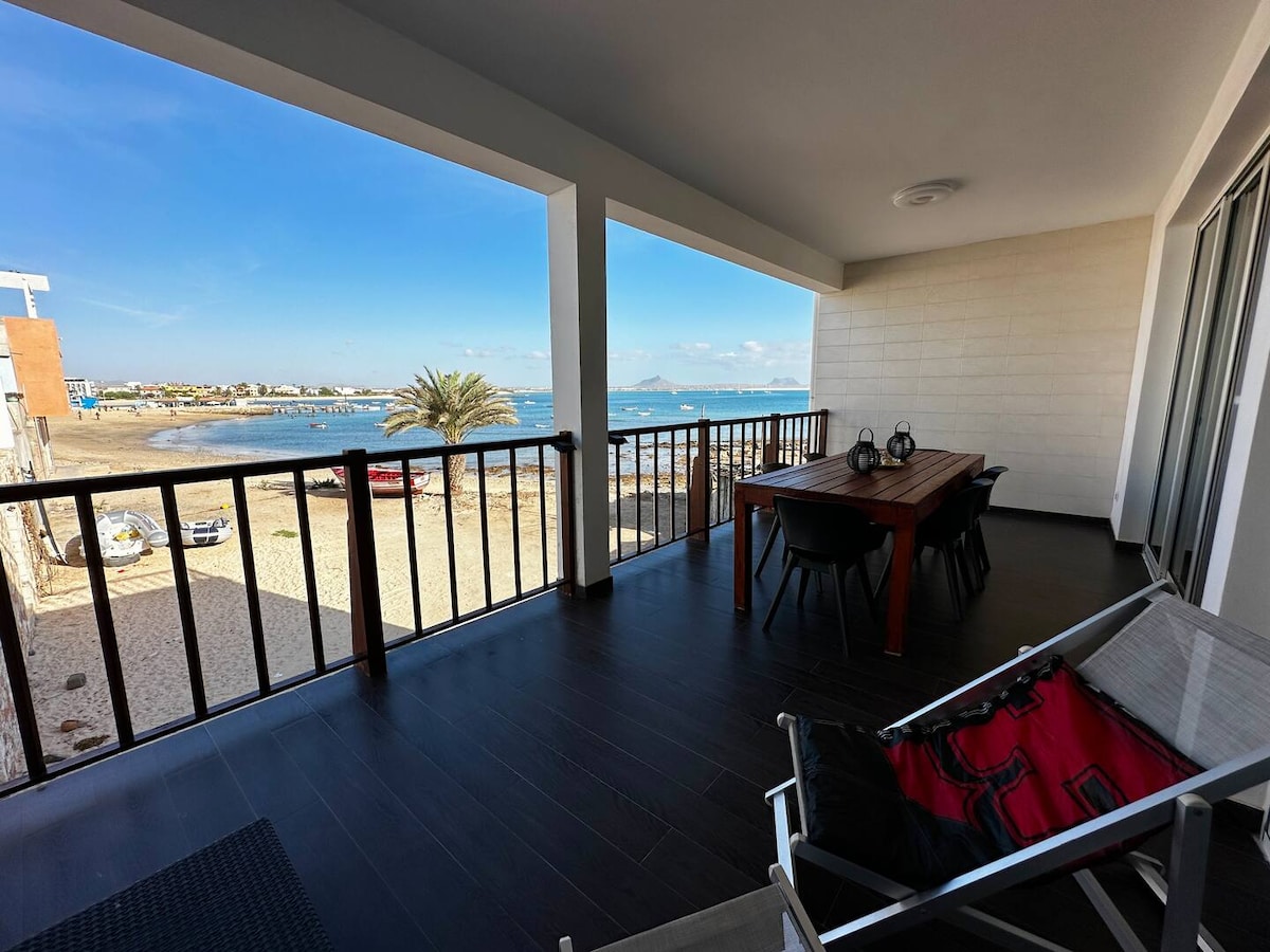 Apartamento de ensueño junto a la playa de Estoril - Boavista, Cabo Verde Despiértate con el sonido del océano y las impresionantes vistas al mar en este encantador apartamento dúplex, situado justo enfrente de la hermosa playa de Estoril, a solo 5 minutos a pie del corazón de Sal Rei. Disfruta de una amplia terraza privada con unas vistas impresionantes, perfecta para relajarte o cenar bajo las estrellas. Un refugio tranquilo y soleado en Cabo Verde, donde la comodidad se encuentra con el paraíso.