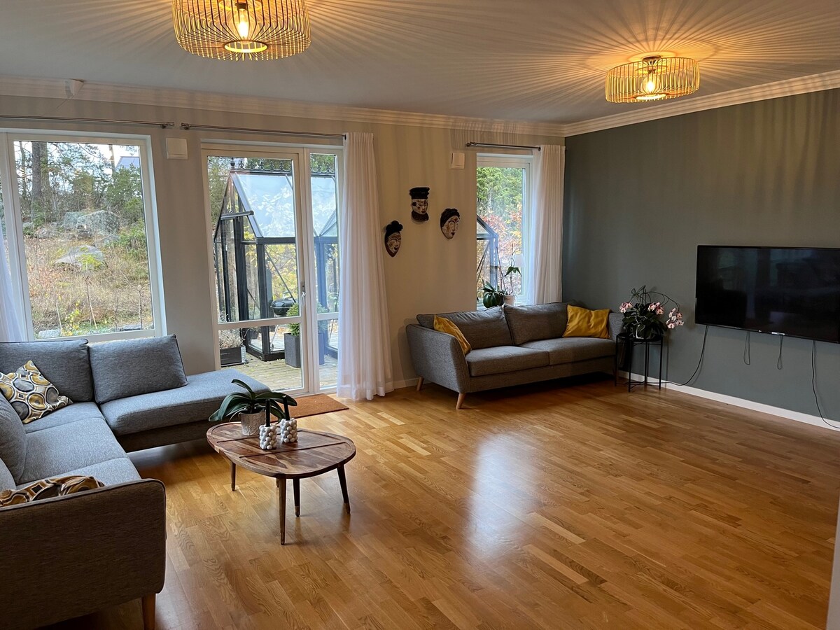 Te damos la bienvenida a esta casa de campo de dos dormitorios y baños con vistas impresionantes al sur del archipiélago de Estocolmo y con un embarcadero privado para nadar y relajarse. Las bicicletas/bicicletas de montaña, kajaks, sauna y jacuzzi adjuntos son para la eliminación de los huéspedes. Adecuado para parejas o la pequeña familia para disfrutar de una estancia relajante en el puerto de Estocolmo, con la naturaleza a la vuelta de la esquina. Sala de estar privada fuera de la casa de campo, con cocina exterior totalmente equipada, posibilidades de barbacoa y vistas al mar.