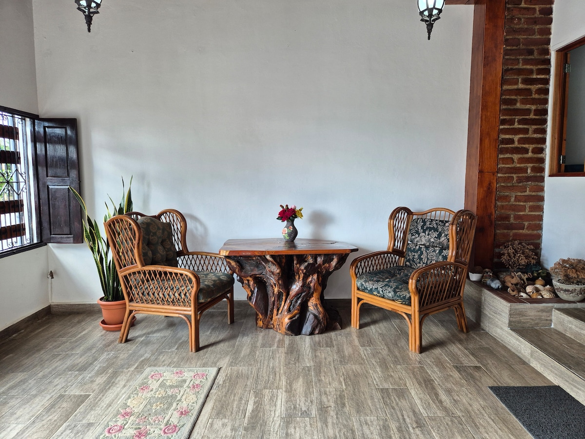 Relájate en este espacio tan tranquilo y elegante.Disfruta de una estadía cómoda y tranquila en esta habitación privada ubicada a solo 5 minutos del centro de Juayúa. Perfecta para parejas, familias pequeñas o grupos de hasta 3 personas, la habitación cuenta con una cama matrimonial y una cama individual, ideal para descansar luego de explorar la Ruta de las Flores. Ubicada en una zona con fácil acceso, es el punto perfecto para relajarte y disfrutar del clima fresco de las montañas de juayua.