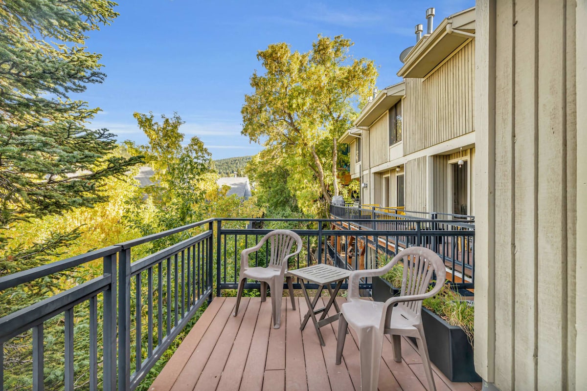 Este alquiler vacacional en Park City ofrece un elegante refugio tipo estudio en el corazón del centro de la ciudad. Ubicado en Main Street, este elegante espacio ofrece una cama tamaño queen, cocina y una acogedora sala de estar con TV por cable inteligente. Relájate en tu balcón privado o sumérgete en el jacuzzi compartido después de un día en las pistas. Con fácil acceso al centro de tránsito del casco antiguo, los remontes y los restaurantes, esta escapada urbana es perfecta para parejas o viajeros solitarios que buscan una aventura durante todo el año.