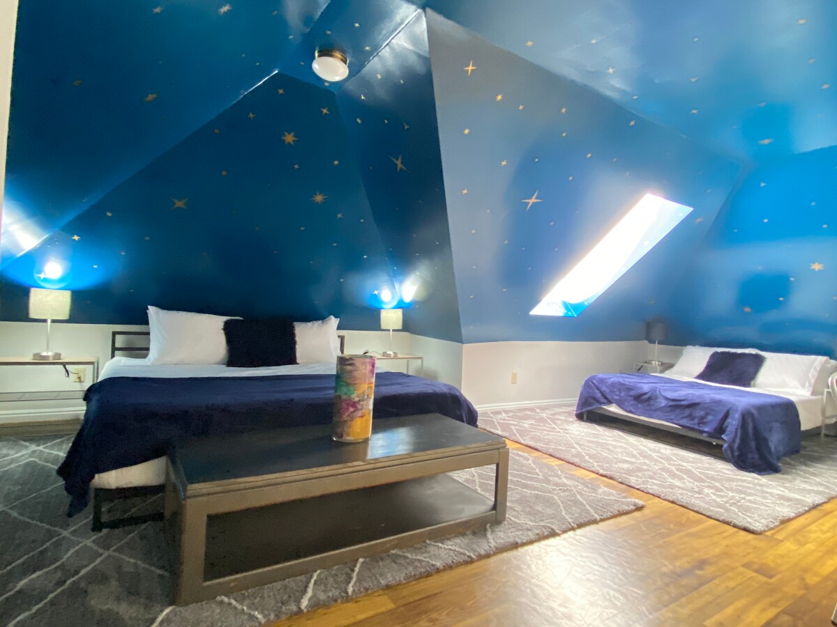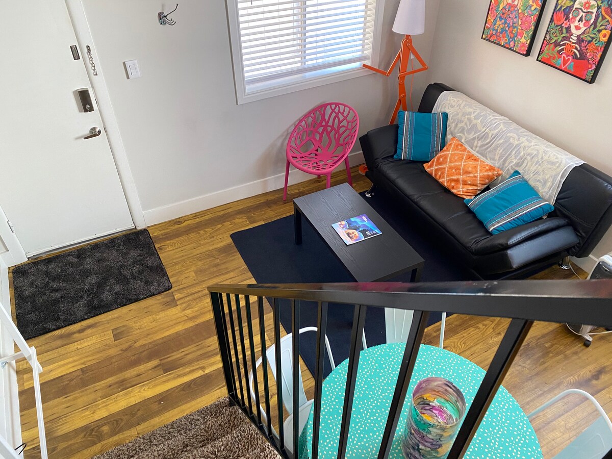 ¡Este espacio artístico SLC Loft es adorable y cómodo! ¡El área para dormir del loft ofrece una sensación de dormir "bajo las estrellas" para una experiencia única en el corazón de Salt Lake City! Loft- 1- Cama tamaño king con colchón de espuma viscoelástica nuevo 1- Cama completa con colchón de espuma viscoelástica nuevo Sala de estar en la planta baja 1- Sofá/cama de futón de espuma viscoelástica Serta ¡Cocina equipada con elementos básicos! NUEVA lavadora + secadora Este espacio artístico es una gran base de operaciones para tus aventuras y viajes de negocios. 30DAY + mínimos