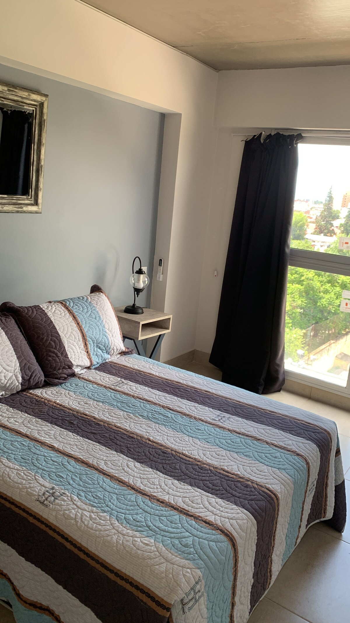 Disfruta de una estadía cómoda y práctica en este monoambiente para dos personas ubicado en el macrocentro de la ciudad de Salta. Situado en un edificio nuevo y moderno, cuenta con cerradura inteligente y acceso controlado, para que te sientas tranquilo y cómodo durante tu estadía. Este depeartamento tiene aire acondicionado, Tv de 43 y WIFI libre, cocina, nevera y horno. Tambien cuenta con toallas y ropa de cama.
