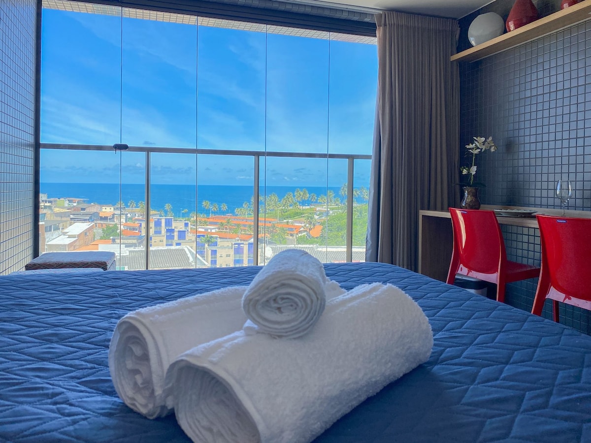 Moderno y acogedor estudio en el corazón de Río Vermelho, con una increíble vista al mar y un balcón orientado al este. Totalmente climatizado, incluye una cocina completa, televisor inteligente 4K, wifi rápido y un escritorio. El edificio ofrece una piscina en la azotea, gimnasio, espacio de coworking y seguridad las 24 horas con acceso biométrico. Ubicado a solo 700 metros de la playa de Buracão, en una zona tranquila cerca de bares y restaurantes. Perfecto para quienes buscan comodidad, conveniencia y una estadía elegante en Salvador.