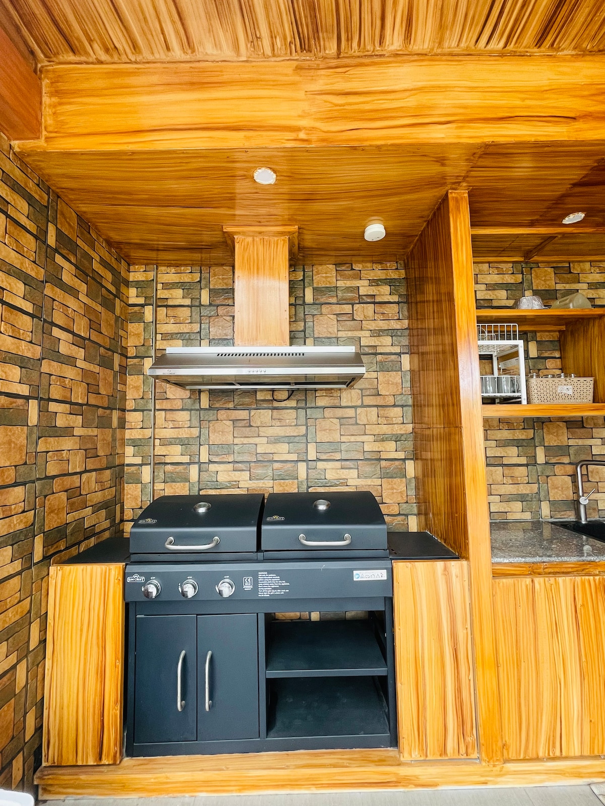 Crea recuerdos en este lugar único y familiar. Esta moderna casa de huéspedes nativa es una combinación de diseño y servicios estadounidenses y filipinos. Tiene 2 dormitorios con balcón y vistas al jardín. La primera habitación es para parejas, la segunda habitación es para niños o amigos y parientes. También damos la bienvenida a 6 huéspedes adicionales en nuestro balcón/sala de estar con aire acondicionado si vas a exceder los 8 pax que se pagarán al momento del check-in. El espacio de estacionamiento también es, nuestra cocina está totalmente equipada con microondas y tostadora de horno.