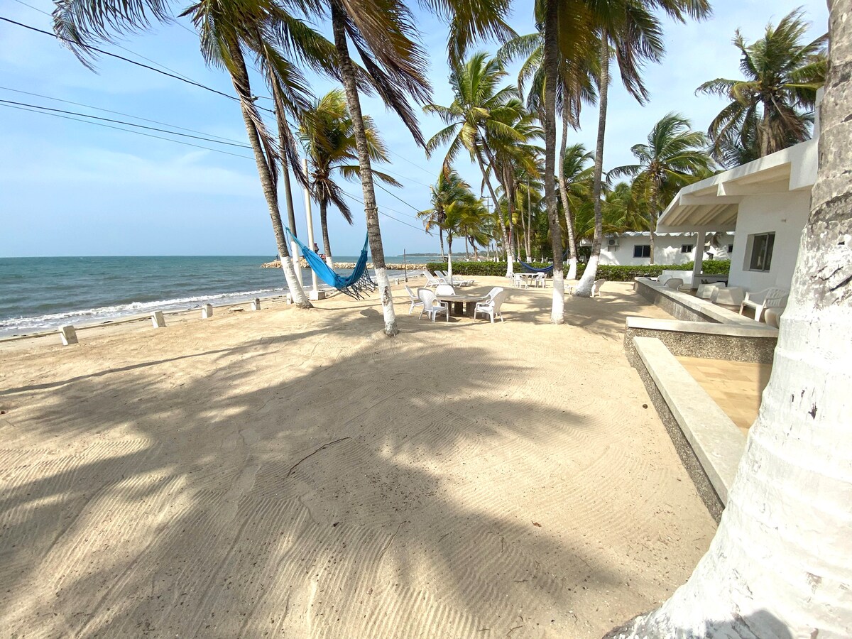 Apartamento súper fresco en un pequeño complejo frente a la playa de solo 6 propiedades, ubicado a solo 7 minutos del centro de Coveñas y a poca distancia a pie de bares / restaurantes de playa y algunas tiendas. La zona es perfecta para parejas, familias o amigos con un ambiente relajado perfecto para los amantes del atardecer, paseos por las hermosas playas y, en general, para relajarse. El apartamento tiene una amplia terraza privada, con hamacas y muebles, mar y jardín, a solo 30 segundos a pie del mar a través del jardín.