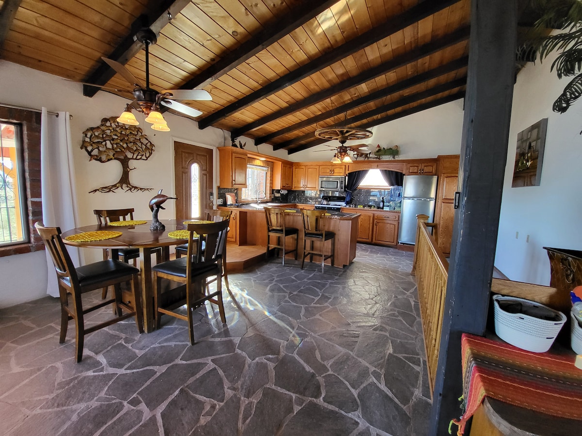 Relájate en esta escapada única y tranquila casa tipo cabaña. Toma la oportunidad de hospedarte en familia de este hermoso hogar con una de ellas mejores vistas únicas. Casa central de las mejores playas de Mulege, Baja California Sur A 5-10 minutos de distancia de las mejores playas en la bahia concepcion. Cerca de Santispac El burro El coyote La escondida Este hogar tiene una historia increíble lo cual toma el nombre de Jhon Wayne , un artista Norte Americano de películas del viejo oeste