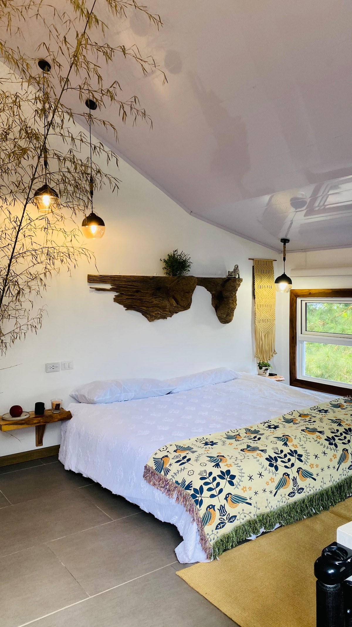 Disfruta de la sencillez de este alojamiento tranquilo céntrico, privado ,construido Rustico Artesanalmente y con un concepto de aves de Costa Rica somos una familia Costarricence , Artistas Naturalistas ,tenemos un pequeño jardin al lado de la cocina al aire libre donde podras ver colibries ,maripoas ,orquideas ect, y con vista al Majestuoso Volcan Arenal a solo 5 minutos del Centro de la Fortuna