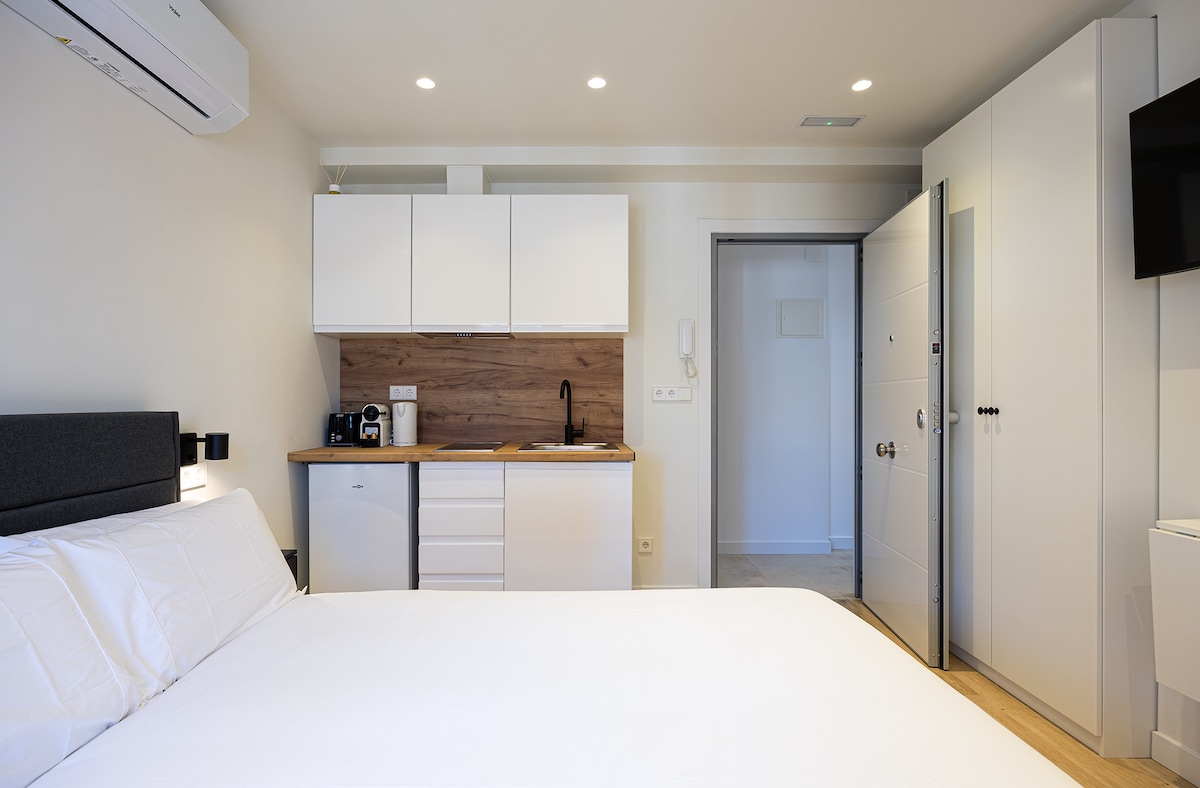 Encantador Estudio recien reformado en la zona de casa de Campo. Ubicado en una de las zonas más vibrantes y emergentes de Madrid, se encuentra a solo 3min caminando del metro Batan y a 4 paradas de metro de la plaza España - Gran Vía. Con un estilo contemporáneo y funcional, el estudio se encuentra a estrenar y cuenta con todos los detalles necesarios para ofrecerte una experiencia única. Cuenta con una cama de medidas 120cm x 190cm idealmente para una persona.