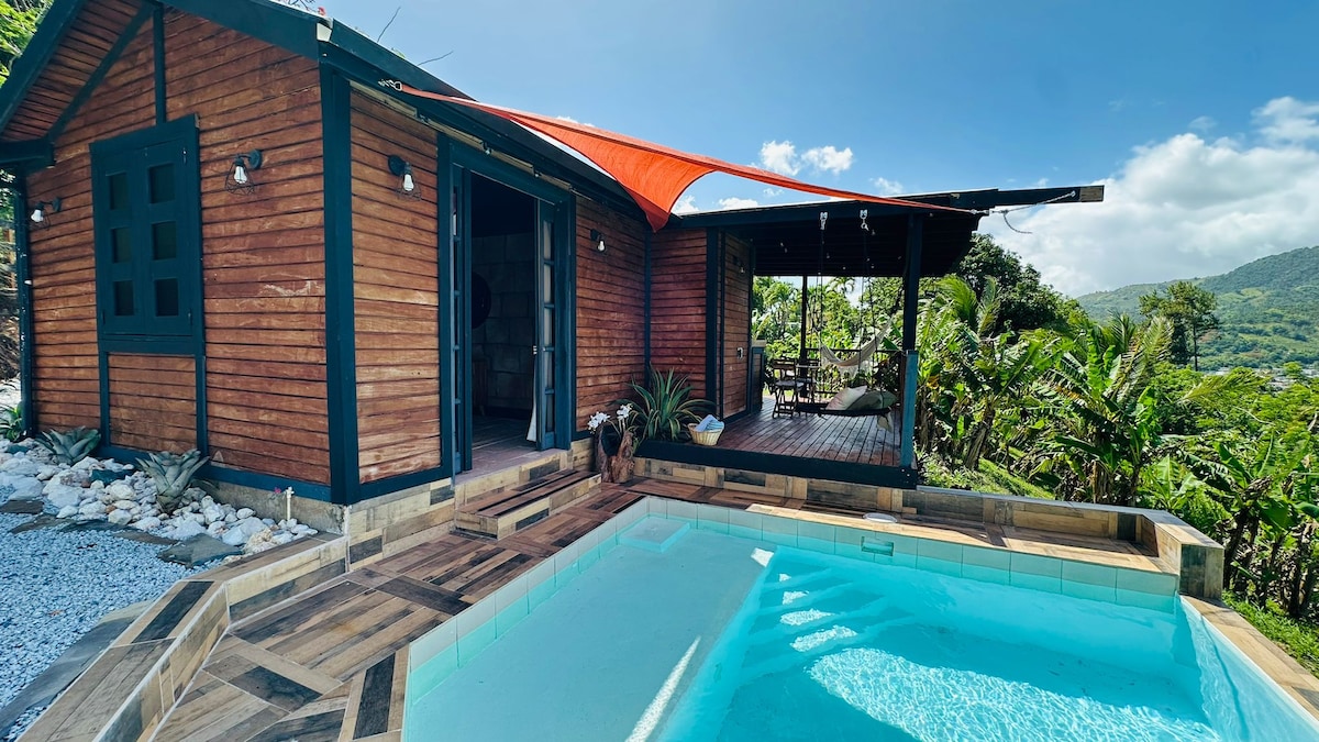 Cabaña en la cima de una colina con piscina y vistas – A 18 minutos del aeropuerto