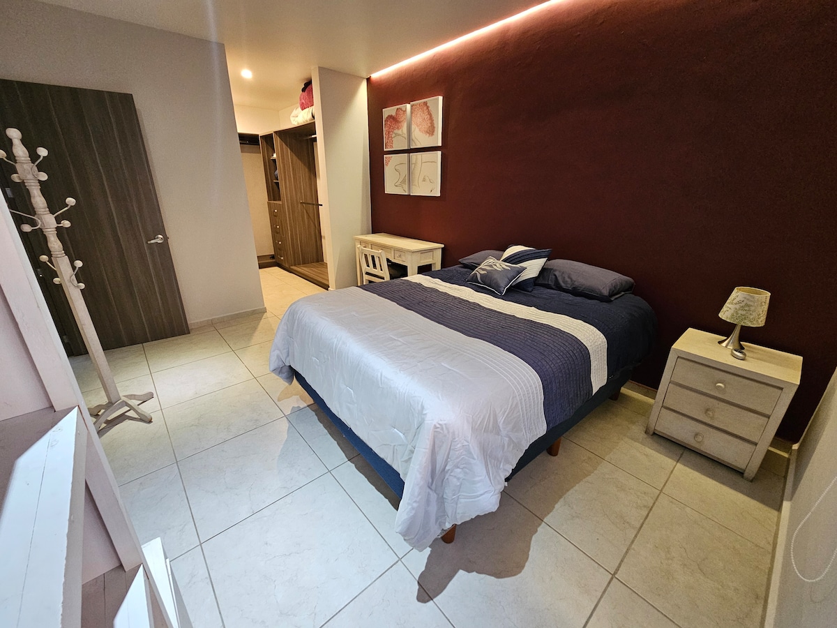 Conoce este amplio departamento de estilo contemporáneo para 6 personas donde podrás disfrutar una estancia tranquila y llena de comodidades. Hemos preparado todo para que disfrutes al máximo nuestro alojamiento. Nuestro espacio es ideal para escapadas de fin de semana o para estancias de mediano plazo donde podrás hacer Home Office. Hemos seleccionado cuidadosamente todos los detalles para que te sientas como en casa desde tu llegada y puedas disfrutar tu estancia al máximo. ¡Bienvenidos!