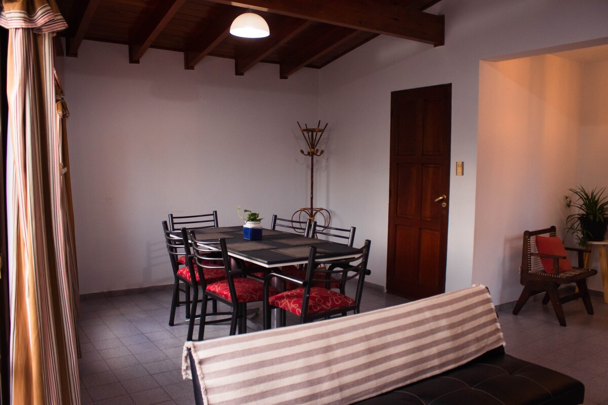 Este alojamiento es tranquilo y céntrico. Se encuentra ubicado a escasos 100 metros de la plaza principal de la capital de San Juan. Es muy confortable, luminoso y cómodo. Posee todos los servicios: desayuno, internet, wi fi, televisor smart de 70 pulgadas, aire acondicionado en todos los ambientes, calefacción, lavadero, servicio de sábanas y toallas. Su entorno permite facil acceso a cualquier tipo de entidades, instituciones administrativas, culturales, deportivas, etc. muy cercanas.