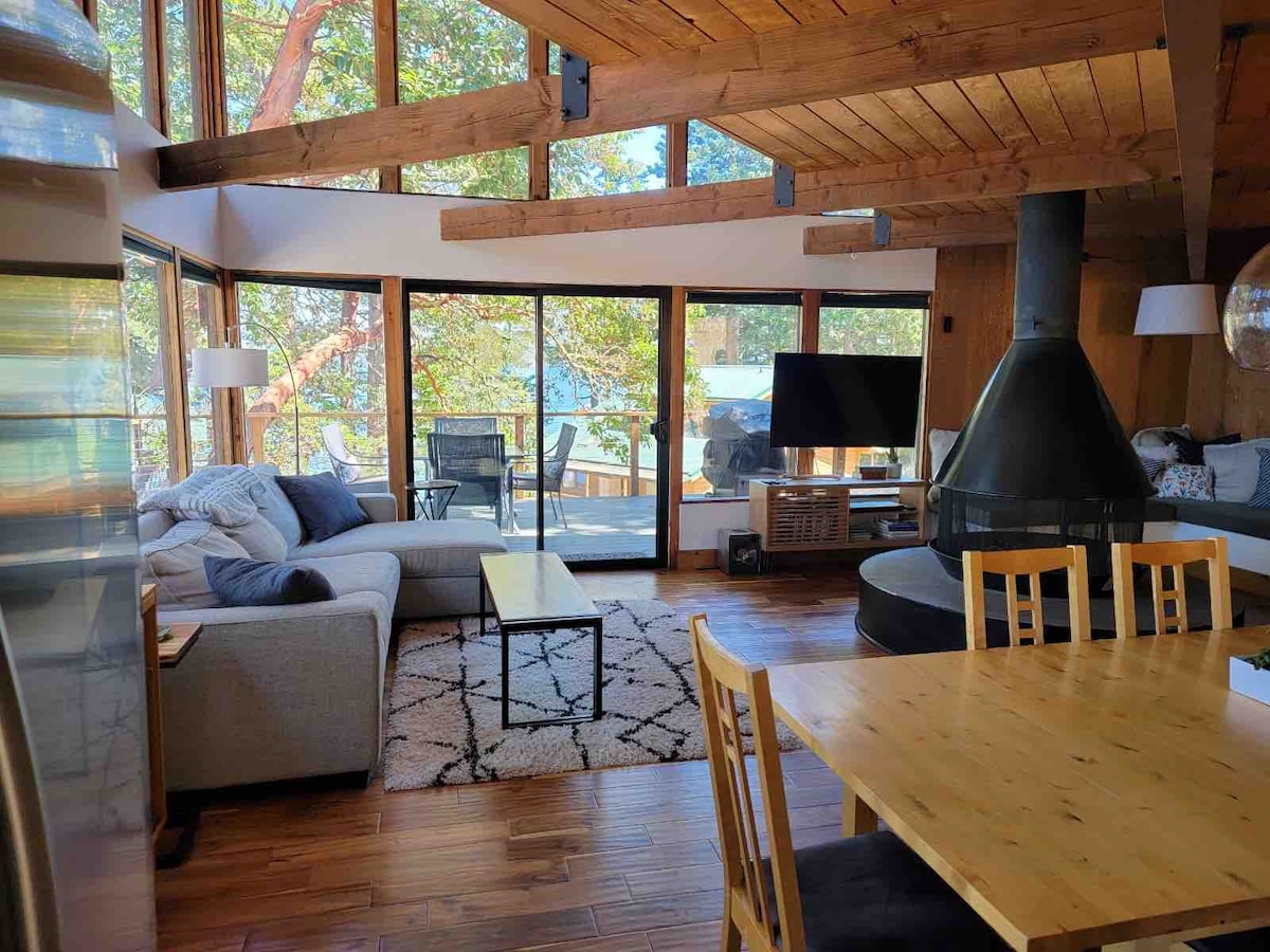 Serpenteando a través de una ladera de bosque de Madrona en el codiciado lado oeste de la isla de San Juan, Haro Sunset House te da la bienvenida con vistas panorámicas desde la isla de Vancouver hasta la isla de Salt Spring al norte. Esta casa es conocida por sus impresionantes vistas desde la amplia terraza y por la increíble observación de la vida silvestre. La casa está cerca del parque del condado de San Juan para acceder a la playa y el emblemático faro Lime Kiln. La casa del propietario está ubicada al lado, pero separada por dos estructuras de garaje, dejando una sensación de aislamiento.