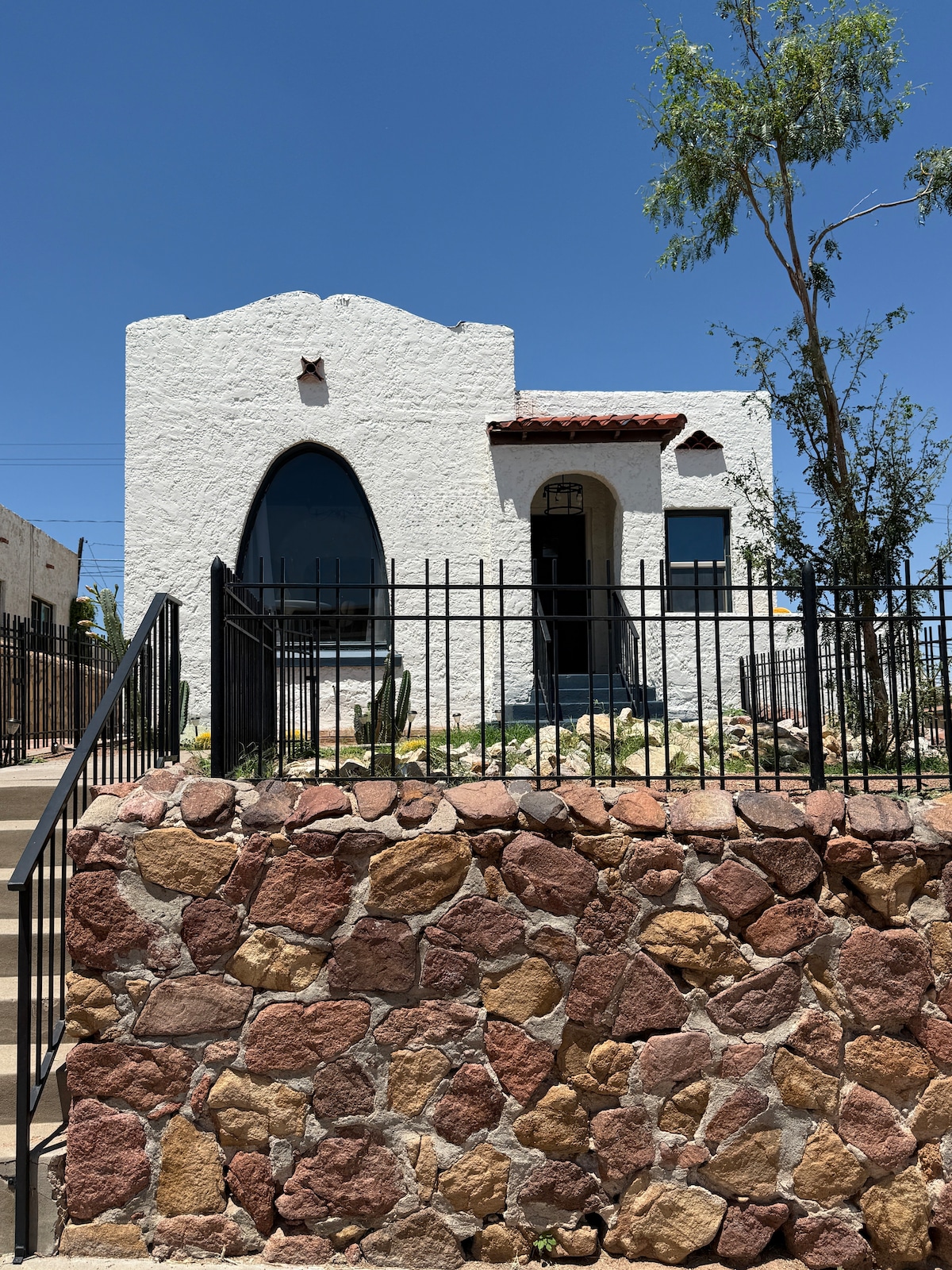 Casita del Arco is a bold and charming one-bedroom duplex in Central El Paso, named for its stunning arched window and desert views. Thoughtfully restored, it blends original details with playful, modern design—vaulted black ceilings, original tiled fireplace, and bright accents throughout. Walk to Memorial Park and the Rose Garden, or relax in this sunny, artful space with a private entrance and shared front porch. If you're traveling with friends check out our adjacent unit, Casita Tierra Rosa